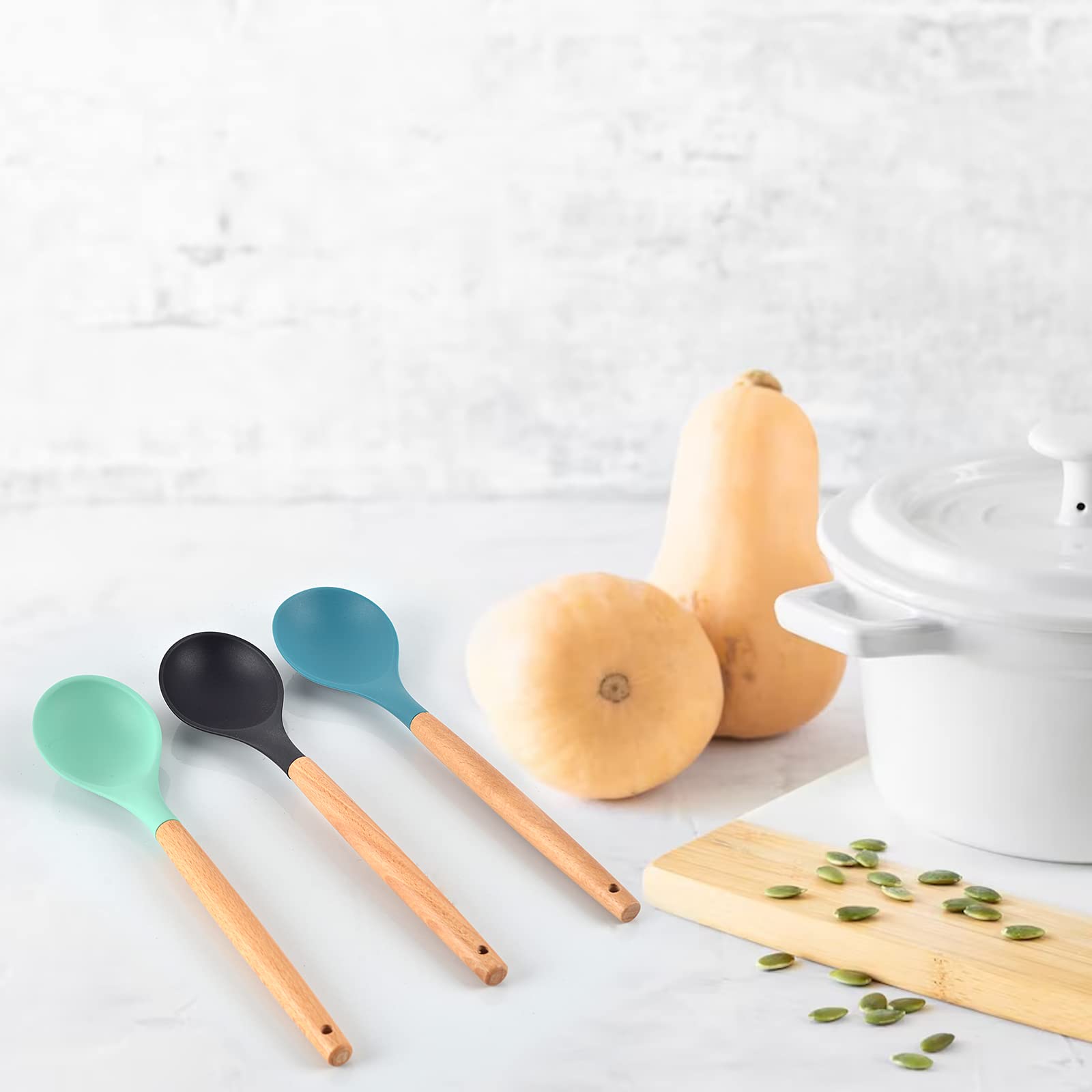 Boah, dieser 2-in-1 Spatel von Zalati ist ja mega praktisch! Kombiniert Spatel und Löffel in einem. Aus lebensmittelechtem Silikon mit Holzgriff - schonend für alle Pfannen, auch mit Antihaft-Beschichtung. Hitzebeständig und super leicht zu reinigen. Ergonomischer Griff liegt perfekt in der Hand, mit Aufhängeloch für platzsparende Lagerung. Im Set: ein weißer und ein schwarzer Spatel plus Lebensmittelzange. Perfekt zum Rühren, Schaben, Servieren - einfach für alles in der Küche. Damit kocht es sich gleich viel besser!