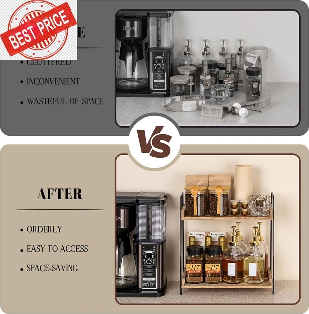 Mega praktisch, dieser zweistöckige Kaffee-Organizer! Endlich Ordnung auf der Arbeitsplatte für all deine Kaffee-Sachen. Aus stabilem Holz und Metall hält er Kaffeebohnen, Tassen, Zucker und alles, was du so brauchst. Perfekt für die Küche, aber auch super im Büro oder sogar im Wohnzimmer. Das zweistufige Design spart echt Platz und sieht dabei noch richtig stylisch aus. In nur 5 Minuten aufgebaut - schneller geht's nicht! Ein tolles Geschenk für alle Kaffeeliebhaber oder einfach für dich selbst, um endlich Ordnung zu schaffen. So macht Kaffee kochen noch mehr Spaß!