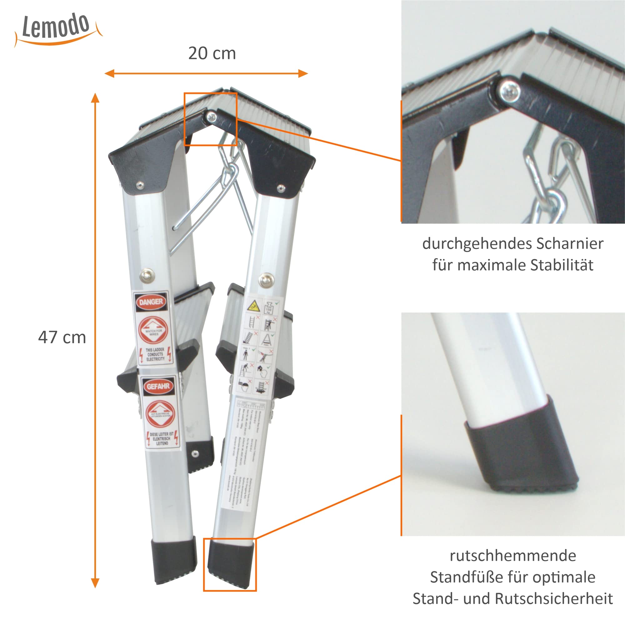 Mann, wie oft steht man da und kann nicht ran an die oberen Schränke? Mit dieser Mini-Trittleiter ist Schluss damit! Nur zwei Stufen, aber die bringen dich genau auf die richtige Höhe. Aus robustem Stahl gefertigt und hält bis zu 150 kg aus - da kannst du ohne Bedenken draufsteigen. Die Stufen sind mit rutschfesten Gummimatten ausgestattet, super sicher auch mit nassen Füßen. Und die Füße haben Polster, damit dein Boden keine Kratzer abbekommt. Maße: 44,5 cm breit, 78,5 cm hoch wenn aufgestellt - und zusammengeklappt nur 4,5 cm tief! Wiegt etwa 3,8 kg, also leicht zu tragen. Der Sicherheitshaken verhindert, dass sie ungewollt zuklappt - wichtig für deine Sicherheit. Perfekt für Küche, Bad, Garage, Büro - überall wo du mal etwas höher rankommen musst. Kannst du auch als Hocker benutzen, wenn du mal kurz pausieren willst. Und wenn du sie nicht brauchst, einfach zusammenklappen und platzsparend verstauen. Egal ob zum Staubwischen, Vorräte holen oder beim Renovieren - diese kleine Leiter ist dein bester Helfer!