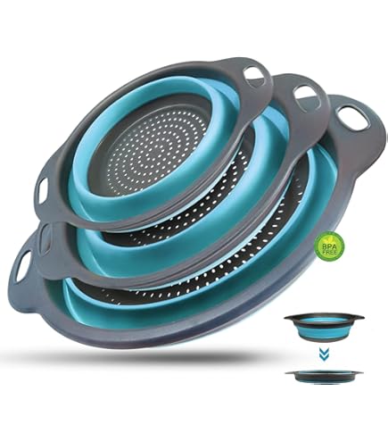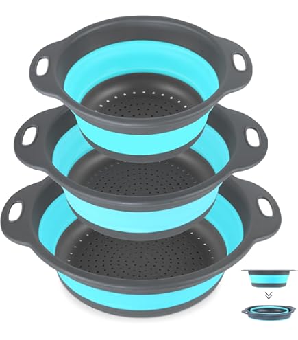 Diese klappbaren Silikon-Siebe von CCUCKY sind ein echter Platzsparer in der Küche! Das Set enthält 2 Siebe in verschiedenen Größen - klein (ca. 1,3L) und groß (ca. 2,8L) - plus 2 praktische Wandhalter. Aus BPA-freiem Silikon, lebensmittelecht, geruchlos und hitzebeständig. Einfach zusammenklappen und an der Wand befestigen - die Dicke reduziert sich auf nur 32-37mm! Perfekt zum Abtropfen von Nudeln, Gemüse, Obst oder zum Waschen von Salat. Die Löcher sorgen für schnelles Abtropfen, die weichen Griffe liegen gut in der Hand. Leicht zu reinigen, spülmaschinenfest. Endlich Ordnung in der Küche und mehr Platz in den Schränken! Einfach genial für kleine Küchen.