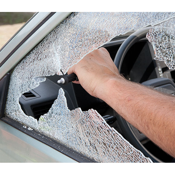 Mit dabei: Halterung und Test-Glasscheibe zum Ausprobieren. Einfach irgendwo im Auto platzieren (am besten griffbereit!) und im Notfall zuschlagen. Für Auto, Bus oder Wohnmobil - Sicherheit geht vor!