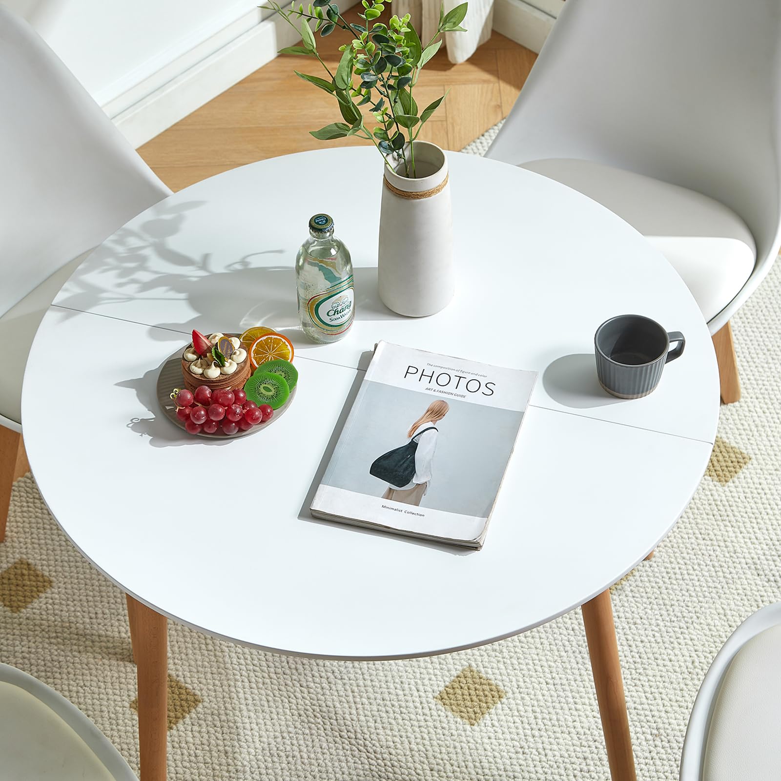 Wunderschöne 2-teilige Essgruppe von FURNITABLE - perfekt für kleine Küchen, Wohnungen oder als zusätzlicher Esstisch. Der runde Tisch (80x80x72cm) aus hochwertigem MDF mit massiven Buchenbeinen und verstellbaren Füßen - steht immer stabil. Dazu zwei super gemütliche Stühle (41x47,5x82cm) mit weichen Sitzkissen in Rosa und Kunststoff-Rückenlehnen. Die Stuhlbeine sind ebenfalls aus massiver Buche - richtig stabil verarbeitet. Perfekt für Frühstück, kleine Mahlzeiten oder als Arbeitsecke in der Küche. Passt auch super ins Wohnzimmer, Büro oder sogar in Cafés. Achtung: Tisch und Stühle kommen in separaten Paketen - kann sein dass sie nicht gleichzeitig ankommen. Einfach aufbauen - die Anleitung liegt bei. Damit schaffst du dir eine gemütliche Ecke zum Essen und Verweilen. Ob für Studentenwohnung, Single-Haushalt oder als zusätzlicher Tisch - diese Gruppe ist super vielseitig und sieht dabei noch richtig stylisch aus!