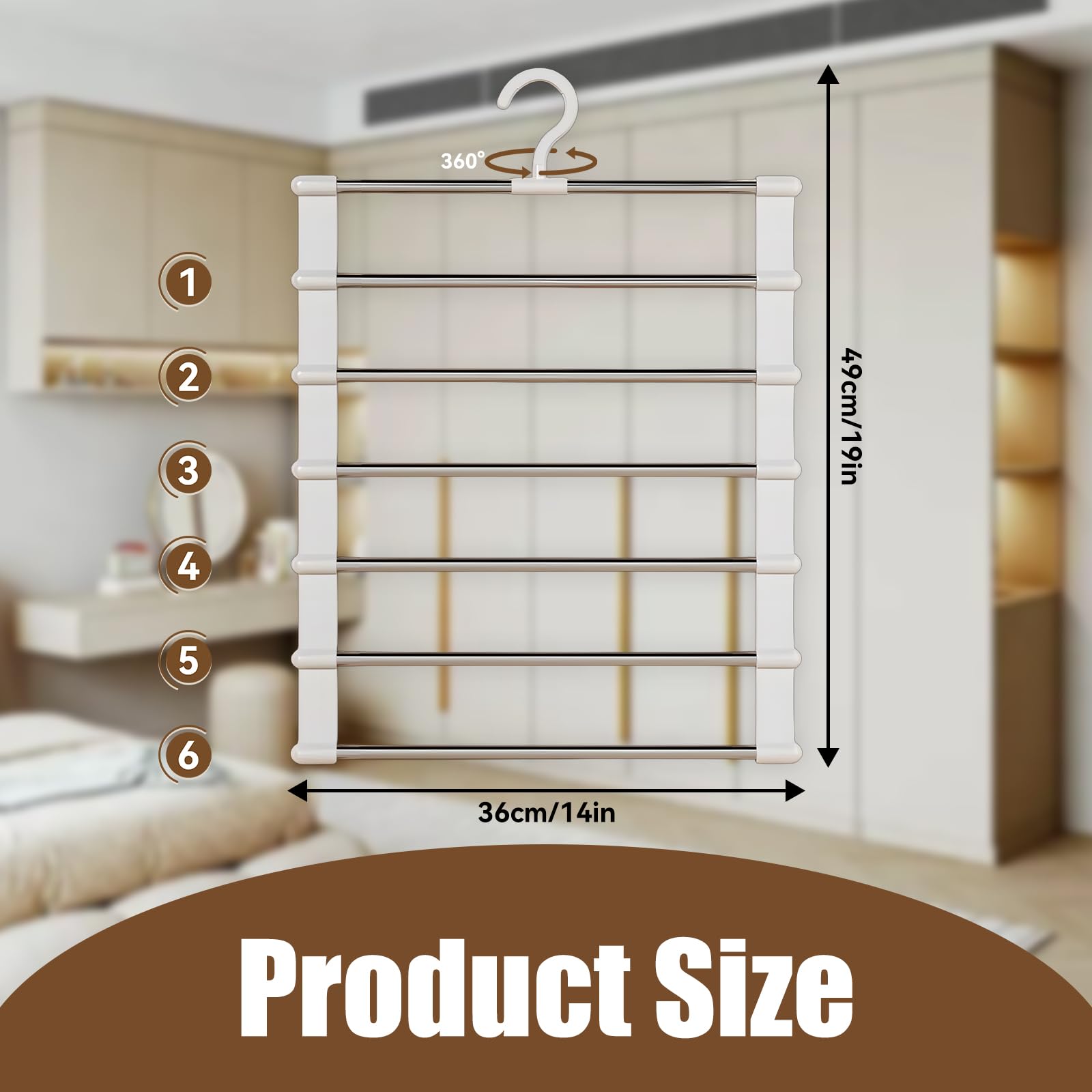 Schluss mit chaotischen Kleiderschränken! Diese cleveren Hosenbügel revolutionieren deine Schrank-Organisation. Aus hochwertigem Edelstahl und ABS-Kunststoff halten sie bis zu 6 Hosen platzsparend auf einmal. Wenn nicht in Gebrauch, falten sie sich auf nur 3cm zusammen - ideal für kleine Wohnungen oder überfüllte Schränke. Jede der 6 Ebenen bietet genug Platz für Hosen, Röcke, Schals oder Krawatten ohne Knitterfalten. Montage ohne Werkzeug in Sekunden erledigt. Perfekt für Zuhause, Wohnheim, Hotel oder Boutique. Endlich alles im Blick und griffbereit. Dein Schrank wird dich lieben!