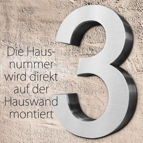 Mach dein Zuhause unverwechselbar mit dieser massiven Edelstahl-Hausnummer 3! Hergestellt in Deutschland aus 2 mm starkem, gebürstetem Edelstahl - absolut wetterfest und rostfrei. Mit 20 cm Höhe ist sie auch aus der Entfernung gut sichtbar. Das geniale INOXSIGN-Montagesystem ermöglicht flexible Bohrpositionen - perfekt angepasst an deine Hauswand. Durch die Montage mit 10 mm Abstand entsteht eine Schattenfuge für optimalen Kontrast. Im Lieferumfang ist alles dabei: Hausnummer, 2 Edelstahl-Befestigungsanker, 2 Dübel, 2 Klebepunkte, Montageschablone und Anleitung. Für glatte Untergründe wie Briefkästen kannst du sie auch einfach aufkleben. Über 1000 zufriedene Kunden vertrauen auf diese Qualität aus Deutschland. Einfach montieren und jahrelang Freude an deiner neuen Hausnummer haben - denn der erste Eindruck zählt!