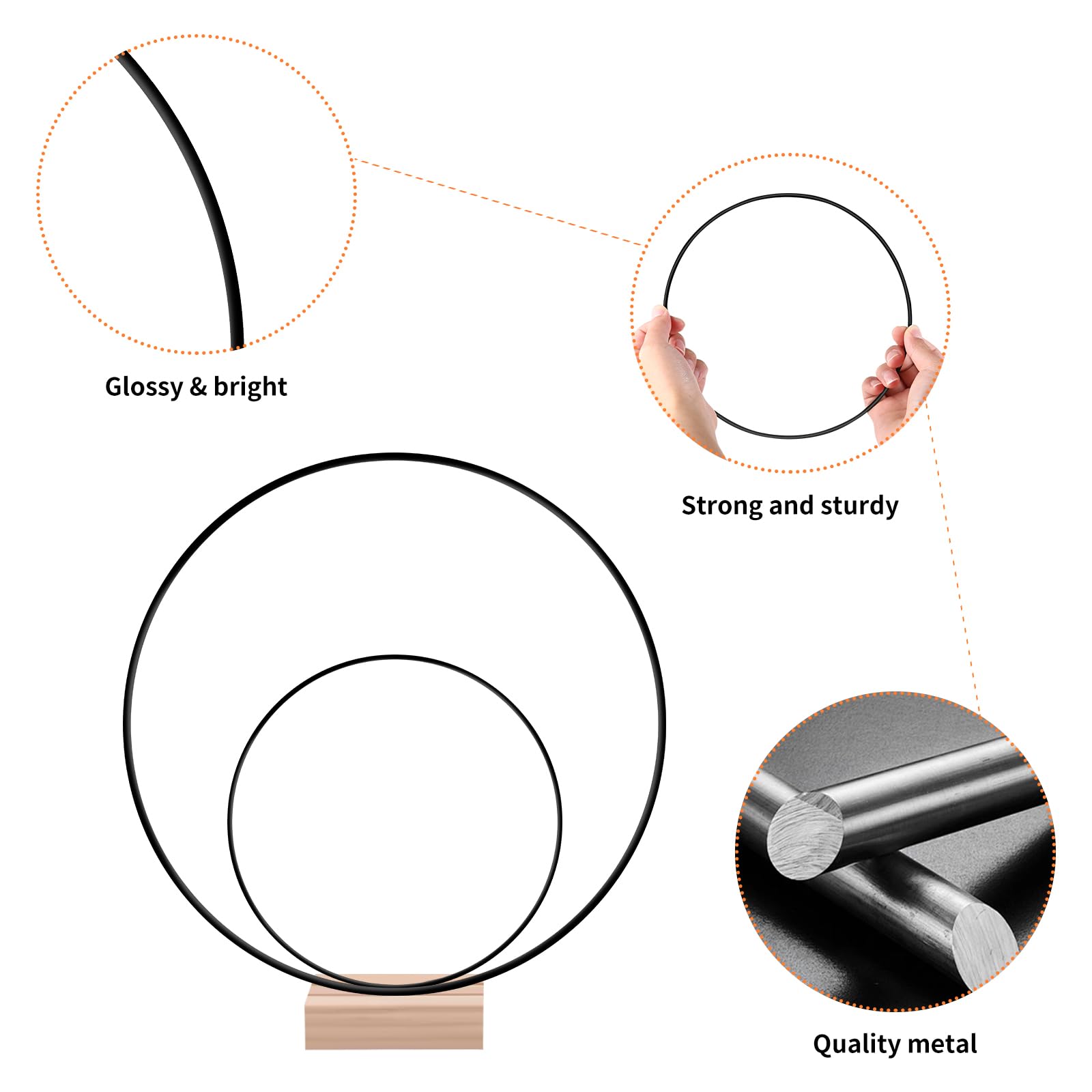 Die Ringe sind aus robustem Metall mit 3 mm Stärke gefertigt und verformen sich nicht so leicht. Die schwarze Farbe gibt ihnen einen eleganten Look, der zu jedem Einrichtungsstil passt.