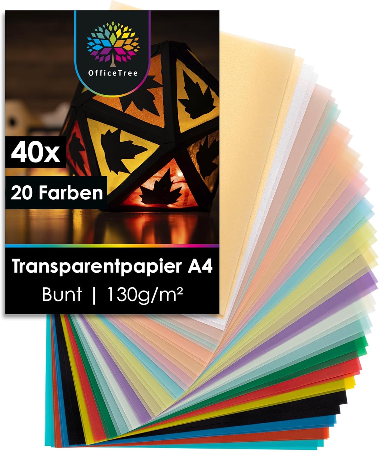 Perfektes Bastelpapier für kreative Projekte! Dieses Set hat 40 Blatt Transparentpapier in 20 verschiedenen Farben - je 2 Blatt pro Farbe. Mit 100g/m² super stabil und reißfest, aber trotzdem flexibel. Ideal für Laternen, Windlichter, Fensterdekorationen oder Grußkarten. Lässt sich sogar bedrucken - sowohl mit Tintenstrahl- als auch Laserdruckern. Ob für Kindergarten, Schule oder Hobbykeller - dieses Papier macht einfach Spaß! Die bunten Farben leuchten wunderschön, wenn Licht durchscheint. Perfekt für die Weihnachtszeit, Geburtstage oder einfach so. Deine Bastelprojekte werden damit zum echten Hingucker! Einfach ein Must-have für alle kreativen Köpfe.