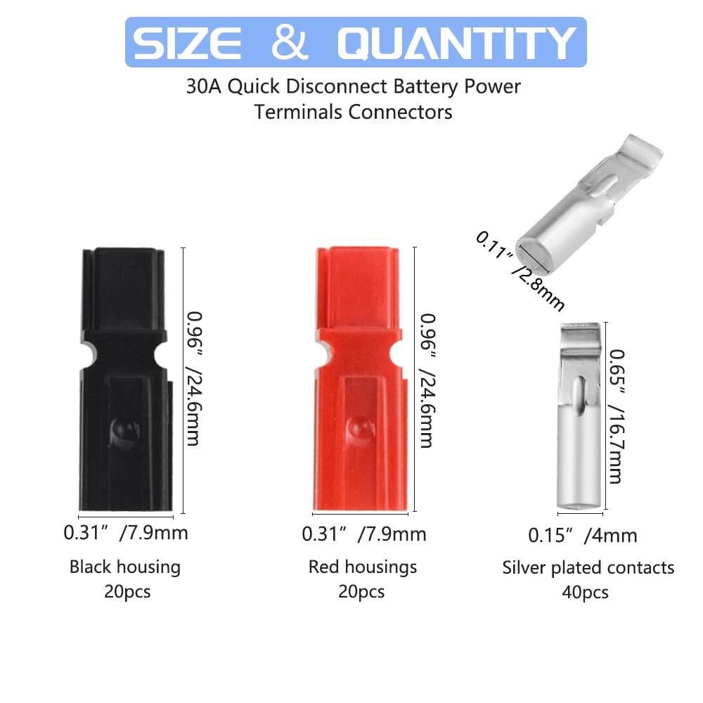 Perfekt für alle Elektro-Projekte! Diese 20 Paar Schnelltrennklemmen sind super praktisch für schnelle und sichere Kabelverbindungen. Für Kabeldurchmesser von 0,5-1,5mm² (16-20 AWG) und bis zu 15A Belastbarkeit. Mit versilberten Kupferkontakten für geringen Widerstand und weniger Wärmeentwicklung. Die farbcodierten Gehäuse (rot/schwarz) helfen bei der Polarität. Geschlechtsneutrale Bauweise - keine männlichen/weiblichen Teile, einfachere Handhabung. UL 94 V0 zertifiziert - also flammhemmend und sicher. Im Set: 20 rote + 20 schwarze Gehäuse, 40 Kontakte und 20 Schutzhüllen. Ideal für Elektrofahrzeuge, Solaranlagen, Maschinen und mehr. In praktischer Aufbewahrungsbox. Wenn du also mal wieder was verkabeln musst und schnelle, zuverlässige Verbindungen brauchst, bist du hier genau richtig!