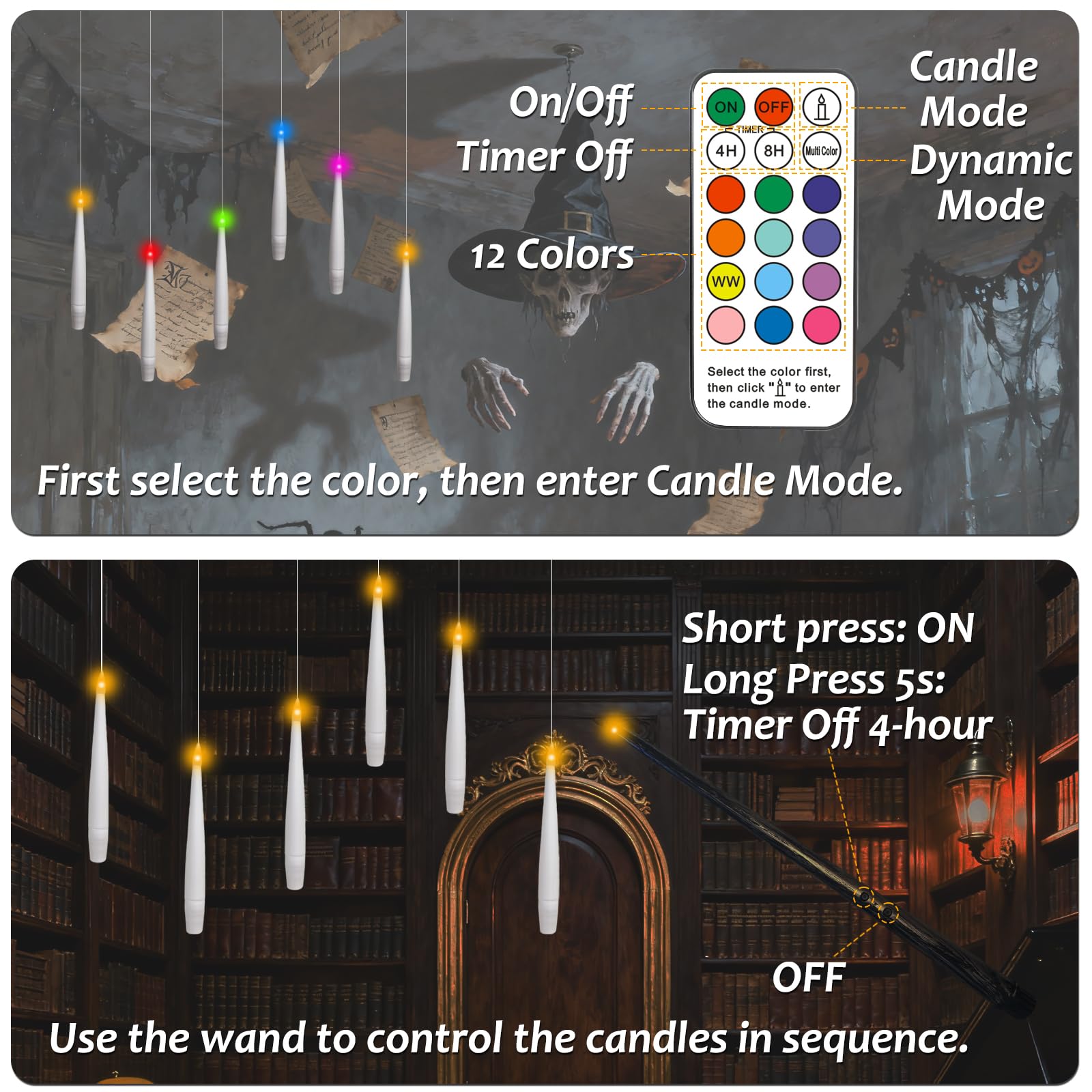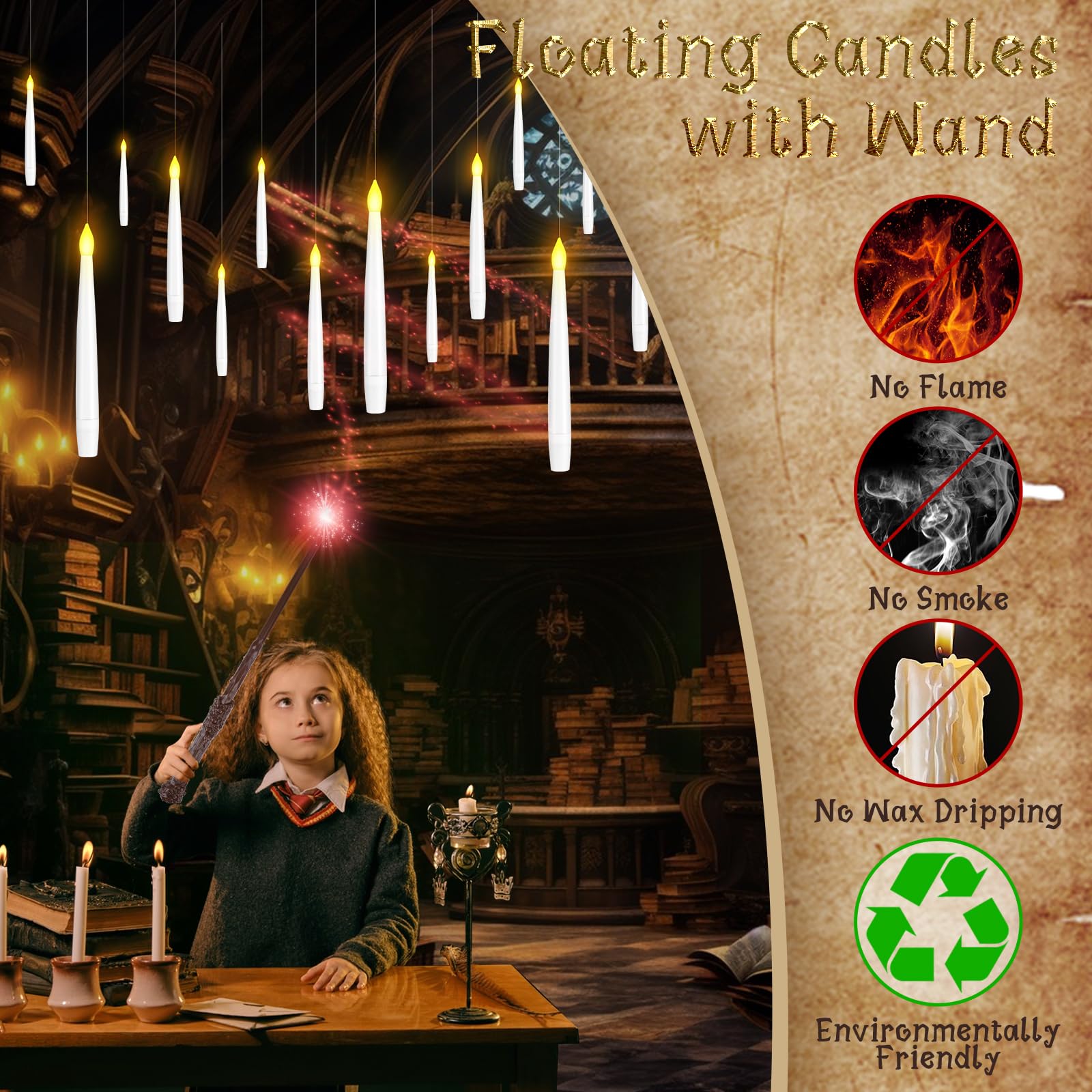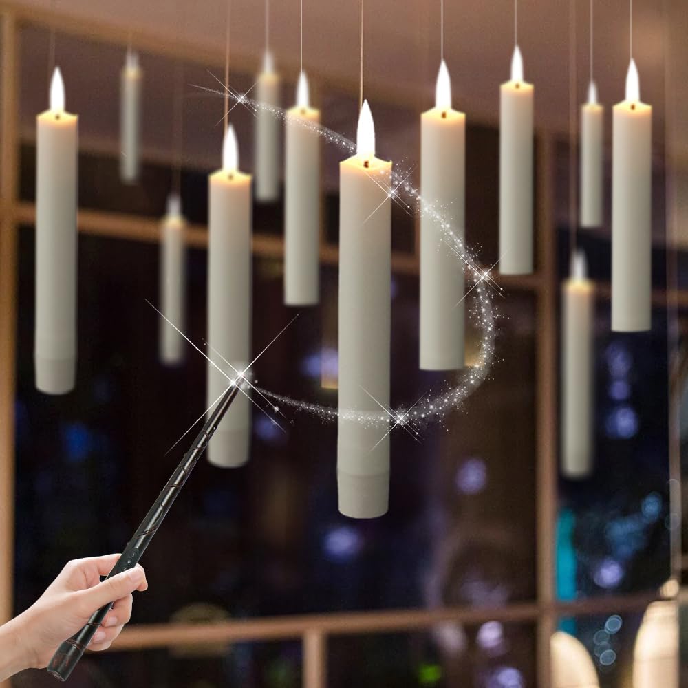 Verzaubere deine Party mit diesen magischen schwebenden Kerzen! Das Set mit 20 Stück batteriebetriebenen LED-Kerzen bringt echte Harry-Potter-Atmosphäre in dein Zuhause. Mit dem beiliegenden Zauberstab kannst du die Kerzen wie durch Zauberhand ein- und ausschalten - ein riesen Spaß für Groß und Klein! Die Fernbedienung ermöglicht dir, zwischen 12 verschiedenen Farben zu wechseln, von warmem Weiß bis zu bunten Partyfarben. Du kannst auch Timer einstellen und zwischen verschiedenen Modi wechseln. Die Installation ist super einfach: Durchsichtiger Fischfaden (30 Meter lang) und Clips liegen bei - einfach die gewünschte Länge abschneiden und die Kerzen aufhängen. Perfekt für Weihnachtsdekoration, Halloween-Partys, Geburtstage oder romantische Abende. Die Kerzen sind absolut flammenlos und damit vollkommen sicher. Mit AAA-Batterien betrieben - am besten gleich wiederaufladbare besorgen! Schaffe deine eigene magische Welt mit diesen einzigartigen Dekorationsstücken.