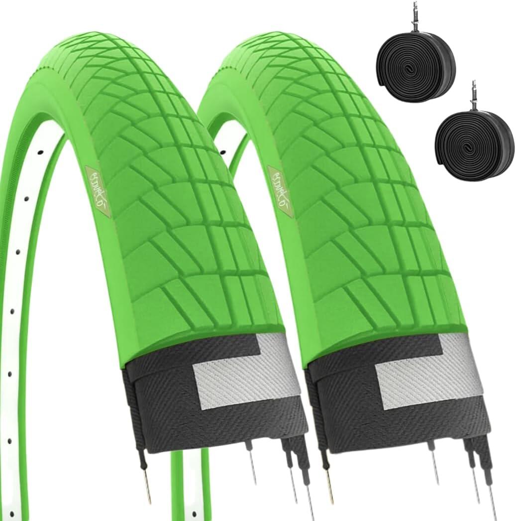 Bring Farbe auf die Straße! Diese beiden bunten Reifen machen aus jedem langweiligen Fahrrad einen echten Hingucker. Perfekt für Graziella Räder, Kinderfahrräder oder City Bikes.\\n\\nMit der Größe 20 x 1,75 (47-406) passen sie auf viele gängige Modelle. Einfach die alten Reifen runter, diese drauf - und schon sieht dein Bike wie neu aus!\\n\\nAus hochwertigem Gummi gefertigt, mit guter Traktion auf allen Untergründen. Ob auf Asphalt, Schotter oder nassen Straßen - die Reifen geben dir Sicherheit und Stabilität.\\n\\nBis zu 43 PSI (300 KPa) aufpumpbar und für max. 65 kg Belastung ausgelegt. Die spezielle Profilierung optimiert die Kurvenlage und das Bremsverhalten.\\n\\nSuper für Kinder die ihr Fahrrad individuell gestalten wollen, oder für Erwachsene die ihrem City Bike mehr Pep verleihen möchten. Die Farben sind kräftig und langlebig.\\n\\nEinfache Montage - wenn du unsicher bist, lässt du sie einfach in der Werkstatt montieren. Perfekt als Ersatz für abgenutzte Reifen oder einfach für einen neuen Look! Zwei Reifen im Set - für Vorder- und Hinterrad. Mach dein Fahrrad bereit für die Straße!
