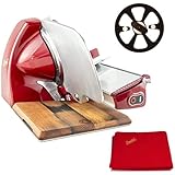 Krass, eine echte Berkel für zu Hause! Die Home Line 200 Plus in schwarz ist einfach der Hammer. Perfekt für alle, die gerne selber Aufschnitt machen - ob Wurst, Käse, Gemüse oder Obst. Die Maschine schneidet super präzise von 0,5 bis 20 mm Stärke und hat ein Messer mit 195 mm Durchmesser. Das coole Teil: Sie kommt mit einem einzigartigen, handgefertigten Schneidebrett aus alten Weinfässern - jedes ein Unikat! Der Messerabnehmer macht die Reinigung super einfach und sicher. Mit dem integrierten Schleifapparat bleibt das Messer immer scharf. Die CE-Sicherheitsverriegelung schützt vor Schnittverletzungen - total wichtig bei so einem Gerät. Und die originale Berkel Abdeckung hält Staub und Schmutz fern. Kompakt gebaut, aber voll professionell - ein absoluter Blickfang in jeder Küche! Mit 12,5 kg hat sie genau das richtige Gewicht - steht stabil, aber ist noch beweglich. Die Aufschnittzange aus Edelstahl ist auch dabei - damit greifst du die Scheiben sicher von der rotierenden Klinge. Einfach anstellen und loslegen - so macht Aufschnitt schneiden richtig Spaß! Perfekt für Feinschmecker und alle, die es genau nehmen wollen.