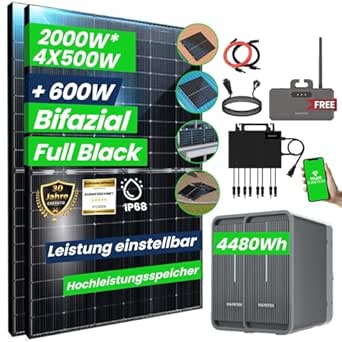 Mit diesem Solarway Balkonkraftwerk wirst du dein eigener Stromproduzent! Das All-in-One Komplettset enthält alles, was du brauchst: 4 bifaziale 500W JaSolar-Module in Full Black, die sogar auf der Rückseite Licht einfangen können, und den Marstek Jupiter C Speicher mit 2,56kWh Kapazität. Besonders clever: Wechselrichter und Batterie sind in einem Gerät - spart Platz und reagiert schneller. Mit der Marstek App behältst du immer den Überblick, wie viel Strom du produzierst und sparst. Bis zu 800W kannst du genehmigungsfrei ins Netz einspeisen - das spart bares Geld! Die n-Type Technologie verlängert die Energieproduktion um 2 Stunden täglich. Mit 3m Kabel einfach in die Steckdose stecken und los geht's! Optional verschiedene Halterungen für Balkon, Flachdach oder Ziegeldach erhältlich. Bis zu 30 Jahre Leistungsgarantie - da investierst du in die Zukunft! Einfach installieren und sofort Stromkosten sparen. Perfekt für Mieter und Eigenheimbesitzer!