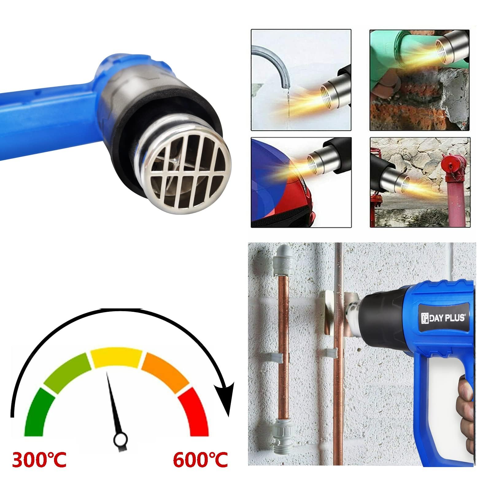 Boah, diese Heißluftpistole ist ein echter Alleskönner! Mit 2000W Leistung heizt sie sich blitzschnell auf und bringt es auf stolze 600°C - aber keine Sorge, du kannst auch auf die schonende 300°C Stufe wechseln. Mit dabei sind drei praktische Düsen: Die Glasschutzdüse für empfindliche Oberflächen, der Air Spreader für große Flächen und die Reflektor-Düse für gleichmäßige Wärmeverteilung. Perfekt zum Lack entfernen, Kleber lösen, PVC-Rohre biegen oder Schrumpfschläuche verarbeiten. Das ergonomische Design liegt super in der Hand und der integrierte Standfuß sorgt für sicheres Abkühlen. Ob Heimwerker oder Profi - mit diesem Teil machst du nichts falsch! Übrigens: Doppelt isoliert und mit Überhitzungsschutz - Sicherheit geht vor!