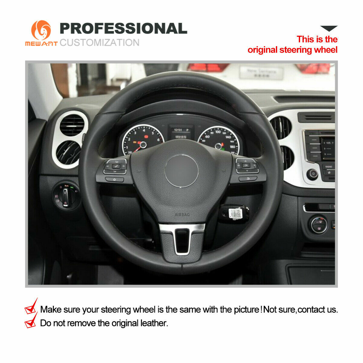 Fährst du einen VW TAYRON ab Baujahr 2025? Dann ist dieser Lenkradbezug genau das Richtige für dich! Aus Kunstleder, das sich super anfühlt und gleichzeitig rutschfest ist - besonders praktisch bei schwitzigen Händen oder langen Fahrten. Die Montage ist denkbar einfach: Einfach über das Lenkrad ziehen und anpassen, schon sitzt er perfekt! Schützt dein Original-Lenkrad vor Abnutzung und sieht dabei noch stylisch aus. Mit dem verbesserten Griff hast du einfach mehr Kontrolle beim Fahren. Und wenn er mal dreckig wird - einfach mit einem feuchten Tuch abwischen. Passt für Lenkräder von 36-39cm Durchmesser. Ein kleines Upgrade, das dein Fahrgefühl aber deutlich verbessert! Einfach bestellen, drüberziehen und mehr Komfort genießen - so einfach kann Auto-Zubehör sein!