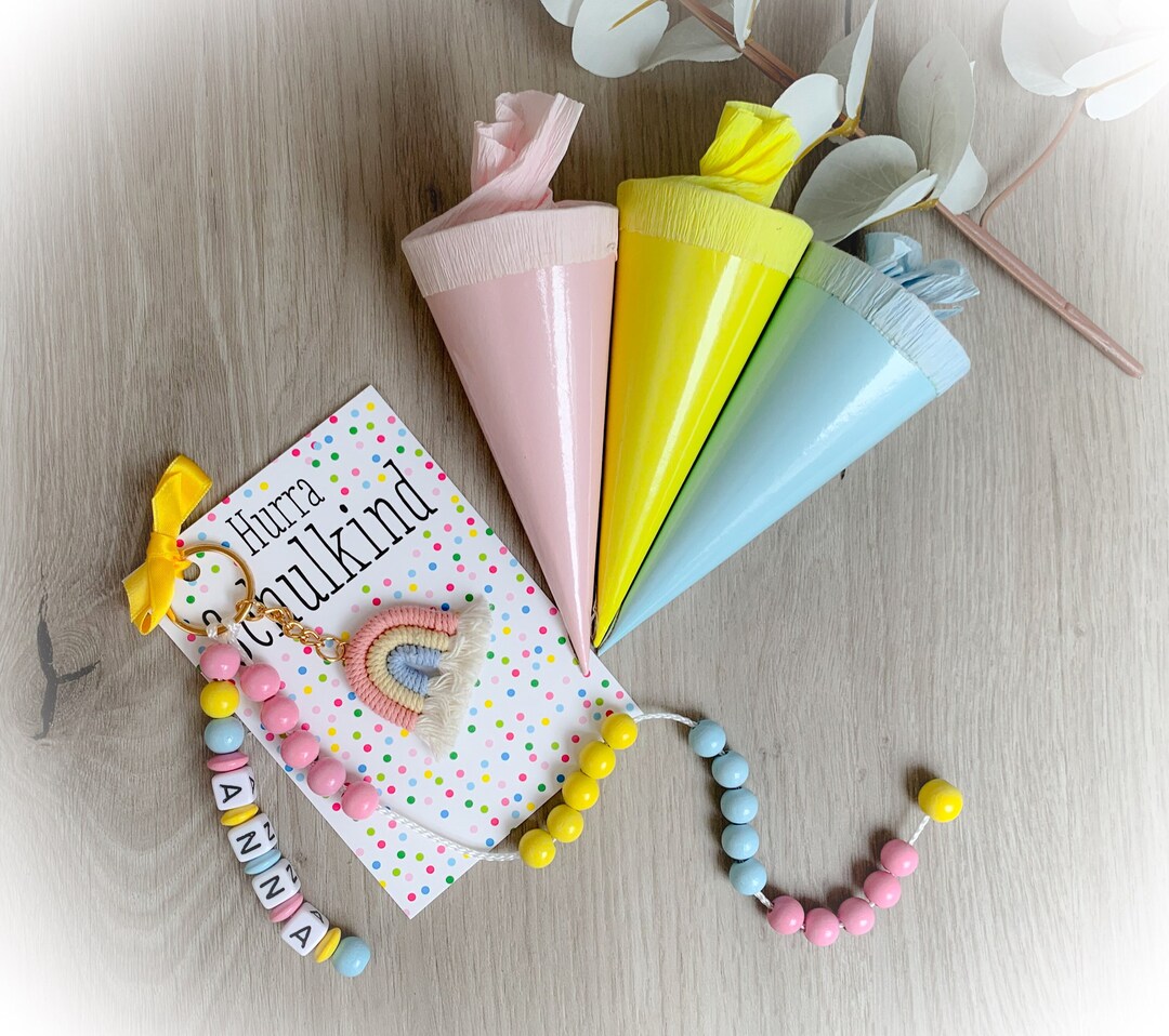 Die Rechenkette hilft spielerisch beim Buchstaben- und Rechnenlernen, während der Schlüsselanhänger als täglicher Glücksbringer dient. Perfekt zum Befüllen der Schultüte oder als eigenständiges Geschenk zum ersten Schultag. Die liebevoll gestaltete Grußkarte mit aufmunternden Worten macht das Geschenk komplett.