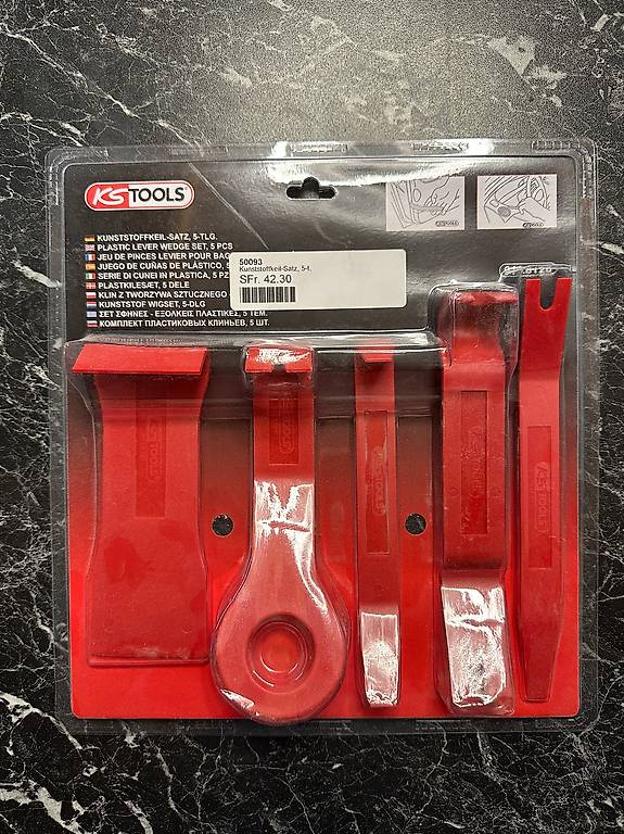 Mit den praktischen Kunststoffhebeln kratzt du dir nicht den Lack, und die speziellen Clip-Zangen machen das Entfernen von Stoßstangenclips zum Kinderspiel. Sogar Werkzeug für Kabelbäume und Zugdrähte ist dabei!