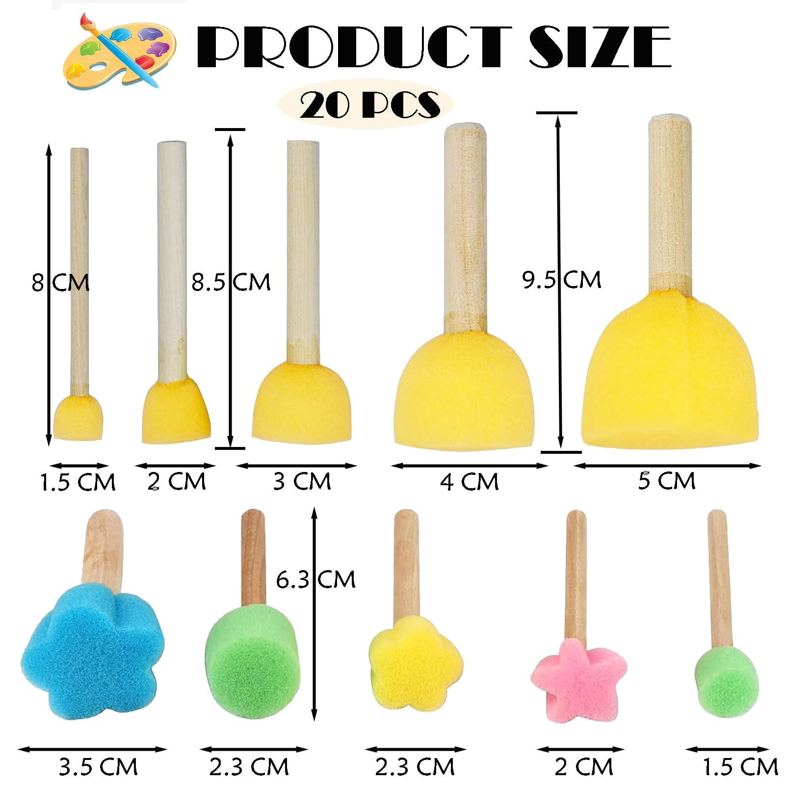• 20er Set Schwammpinsel Für Kinder | Bunt, Aus Schaumstoff & Holz | DIY Malerei & Basteln