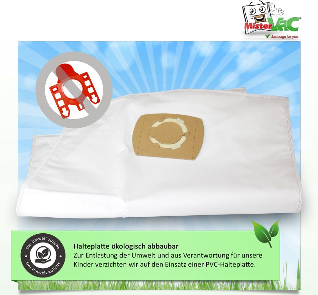 Dein Swirl PH86 Staubsauger braucht neue Beutel? Dieses Set mit 20 SG-Beuteln ist genau das Richtige! Aus mehrlagigem Vlies für hervorragende Filterleistung und extreme Reißfestigkeit. Optimale Abstimmung auf die Saugleistung deines Staubsaugers. Inklusive 2 Motorschutzfiltern zum Zuschneiden. Einfach den alten Filter als Schablone verwenden. Geeignet für Hausstaub, Erde, Kalk und andere normale Stäube der Klasse L. Und das beste: Ohne Plastikverschluss - umweltfreundlich! Von MisterVac, dem Experten für Staubsaugerzubehör seit 20 Jahren. Regelmäßiges Wechseln sorgt für volle Saugleistung und schont den Motor.