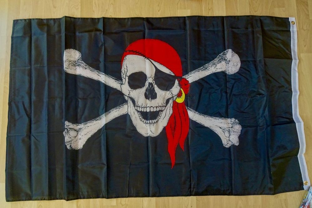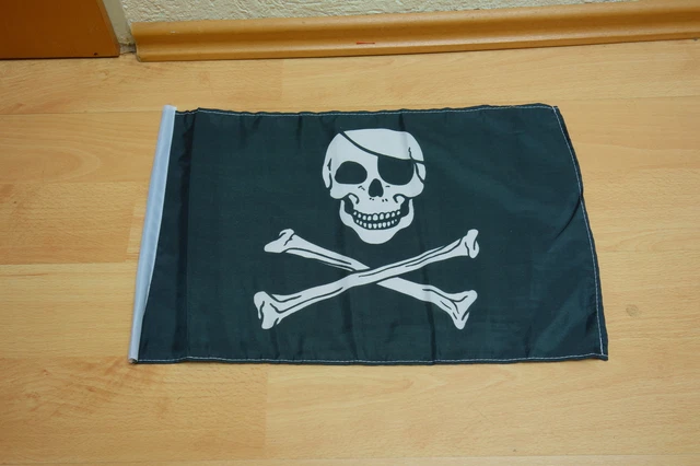 Zeig Flagge auf deiner Maschine! Diese coole Piratenflagge mit Totenkopf-Motiv macht jedes Motorrad individueller. Aus robustem 110g/m² Polyester, absolut wetterfest. Komplett mit Befestigungsband - einfach ans Bike machen und losdüsen. Deutsche Qualität, die hält was sie verspricht!