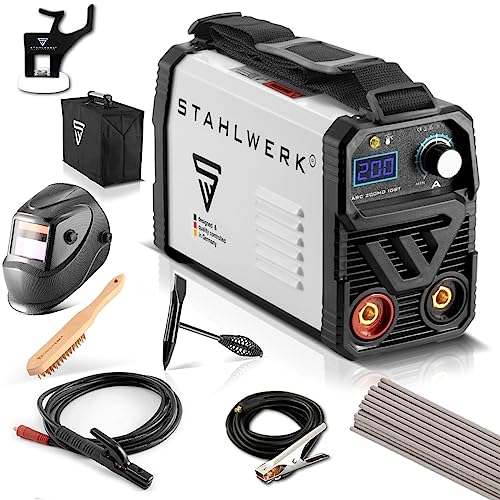 Professionelles Schweißen für Heimwerker und Profis! Dieses 250A Schweißgerät meistert auch anspruchsvolle Aufgaben mit Leichtigkeit. Mit IGBT-Technologie für stabilen Lichtbogen und saubere Nähte. Das große LED-Display zeigt alle wichtigen Daten auf einen Blick. Nur 2,4 kg leicht und super kompakt - perfekt für unterwegs. Mit praktischen Features wie Hot Start (leichter Lichtbogenstart), Arc Force (bessere Durchdringung) und Anti-Stick (kein Festkleben der Elektrode). Inklusive Komplettset: Elektrodenhalter, Masseklemme, 10 Schweißelektroden, Handschuhe und Bürste. Ideal für Reparaturen, Metallbau und DIY-Projekte. Auch für Edelstahl, Kohlenstoffstahl und Gusseisen geeignet. Dein zuverlässiger Partner für jede Schweißaufgabe!