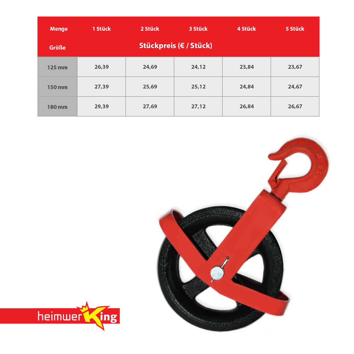 Für schwere Arbeiten gemacht! Diese massive Umlenkrolle aus Gusseisen hält bis zu 220kg aus und ist perfekt zum Heben von Lasten. Mit 160mm Durchmesser und Wirbelhaken, der verhindert dass sich das Seil verdreht. Super für Bauarbeiten, im Garten oder Werkstatt. Nimmt Seile bis 20mm Dicke auf. Gesamthöhe 260mm, Breite 60mm - robust und langlebig. Einfach in der Handhabung: Seil durchfädeln und los geht's! Ideal für Flaschenzüge, Bauaufzüge oder um schwere Gegenstände zu bewegen. Lieferung inklusive 1x Umlenkrolle. Macht schwere Arbeiten deutlich leichter - ein echter Helfer für Handwerker und Heimwerker!