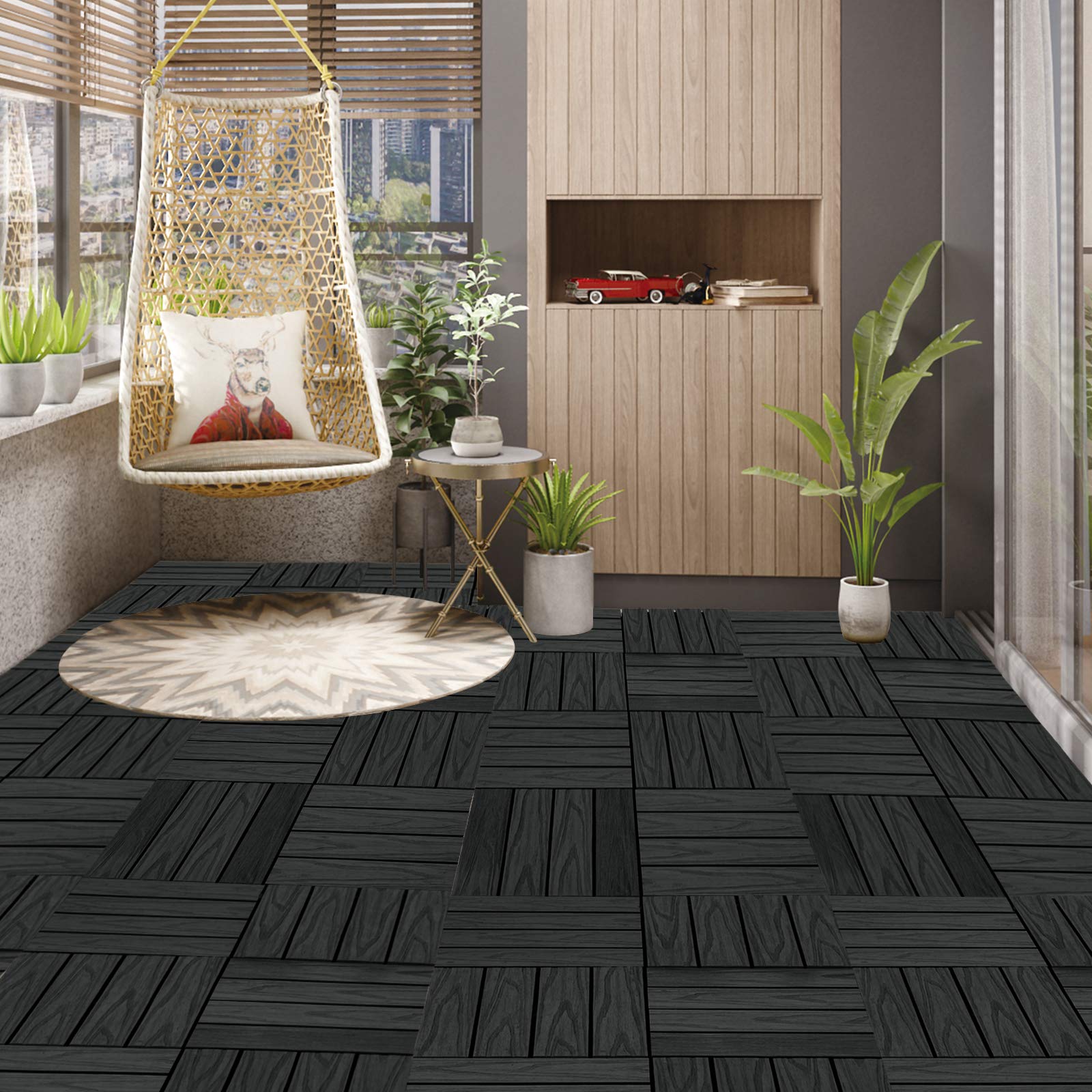 • Laneetal WPC Terrassenfliesen 22er Set - 2m² Klicksystem 30x30cm Anthrazit