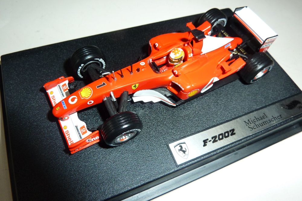 • Ferrari F2002 Michael Schumacher Modellauto 1/24 - Weltmeister Auto 2002 Mit Vitrine & Sockel