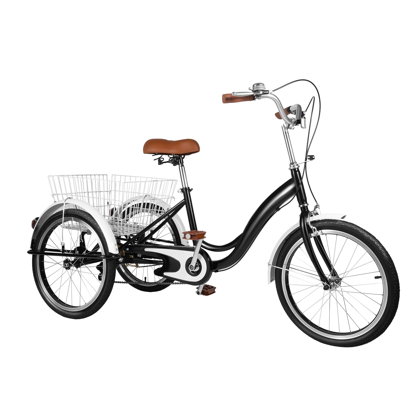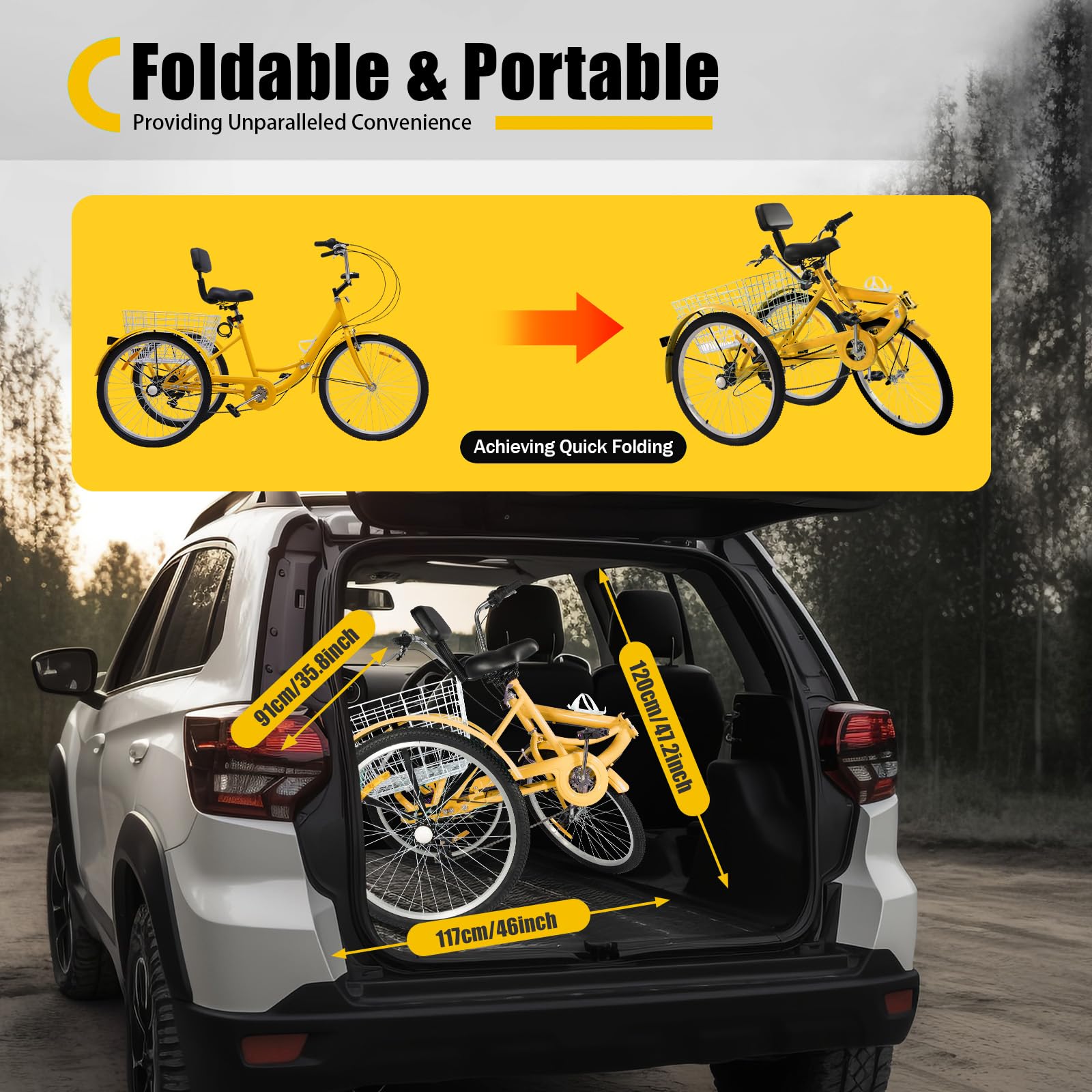 Entdecke die Freiheit auf drei Rädern! Dieses stabile Dreirad für Erwachsene macht Fahrspaß für jeden möglich. Mit 7 Gängen meisterst du auch steilere Strecken locker, während die verstellbare Sitzhöhe (76-95 cm) und Armlehnen (106-112 cm) für perfekten Komfort sorgen. Der robuste Karbonstahl-Rahmen trägt bis zu 210 kg - ideal für Einkäufe oder größere Mitfahrer. Der große Rückenkorb (55x45x28 cm) bietet reichlich Stauraum für deine Einkäufe oder Picknick-Ausrüstung. Besonders praktisch: Das Dreirad lässt sich einfach zusammenklappen und passt so in jeden Kofferraum. Sicherheit wird groß geschrieben mit V-Bremse vorne, Rücktrittbremse hinten, LED-Frontlicht und Reflektoren. Die 24-Zoll Reifen mit Anti-Rutsch-Profil geben dir auf jedem Untergrund Halt. Ob für entspannte Stadtfahrten, Einkaufstouren oder als zuverlässiges Fortbewegungsmittel für Senioren - dieses Dreirad bietet maximale Stabilität und Komfort. Einfach aufklappen, aufsatteln und die Welt auf drei Rädern erkunden!
