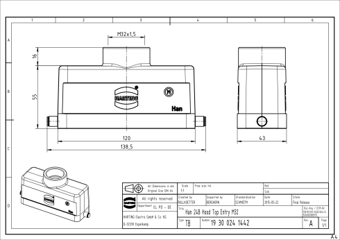 HARTING HAN 24B Steckverbinder - 24+PE-polig, 500V Schwere Steckverbindung