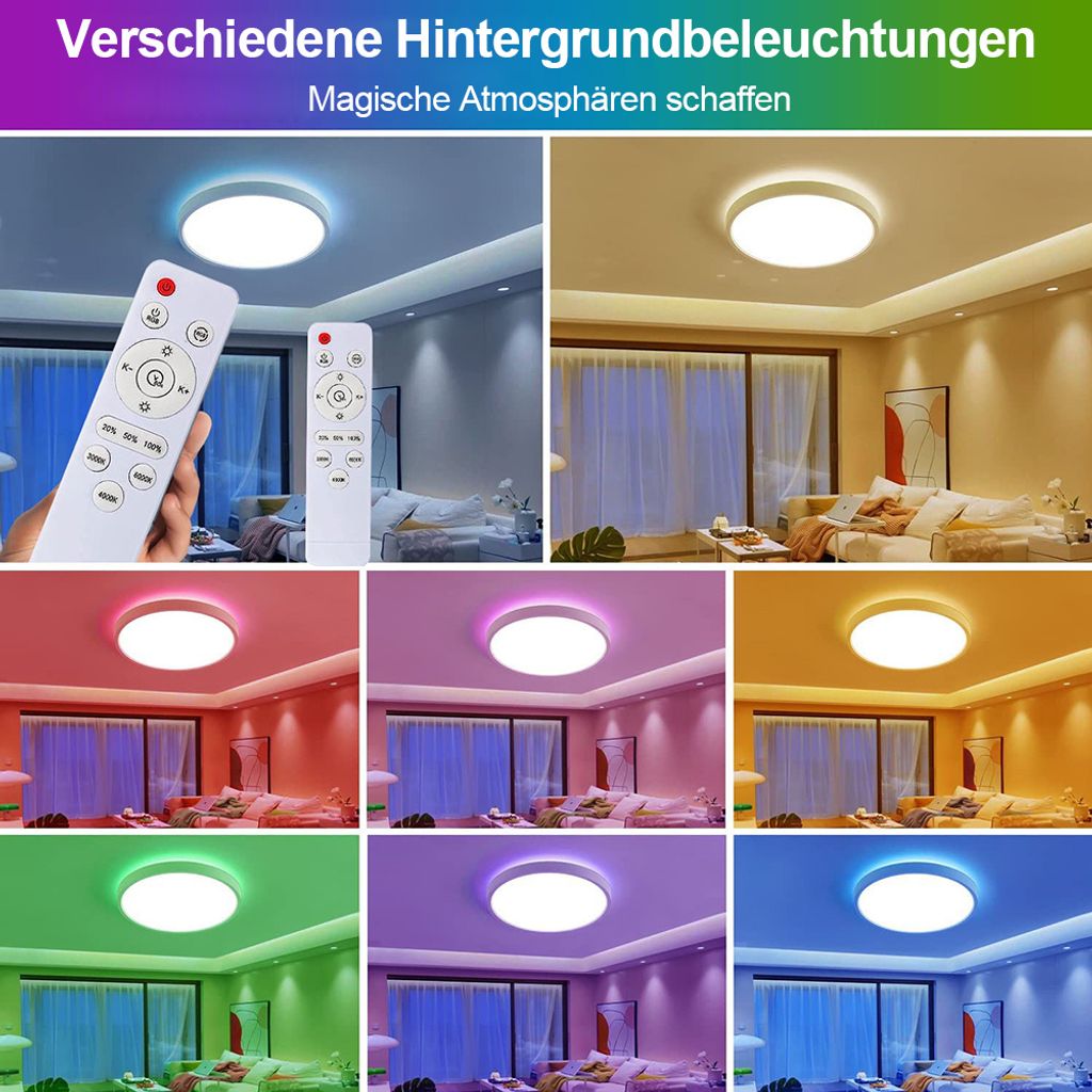 Smart LED Deckenleuchte 24W RGB Dimmbar - App & Fernbedienung, IP54, 2700K-6500K, 30cm