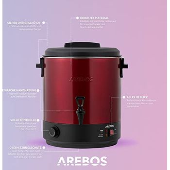 Der ETA Granny Einkochautomat ist dein Helfer für haltbare Genüsse! Mit 25 Litern Fassungsvermögen und 1800W Leistung meistert er bis zu 14 Ein-Liter-Gläser auf einmal. Der stufenlose Thermostat von 30-100°C und Timer von 20-120 Minuten geben dir volle Kontrolle. Aus hochwertigem Edelstahl gefertigt, mit versteckter Heizspirale für leichte Reinigung. Die wärmeisolierten Griffe und rutschfesten Füße sorgen für Sicherheit. Neben Einkochen und Sterilisieren bereitest du damit auch Suppen, Gulasch oder warme Getränke zu. Die KEEP WARM-Funktion hält Speisen auf Temperatur, der praktische Auslaufhahn erleichtert das Abfüllen. Mit Überhitzungs- und Trockengehschutz - sicher und zuverlässig für Jahre voller köstlicher Eingemachter!