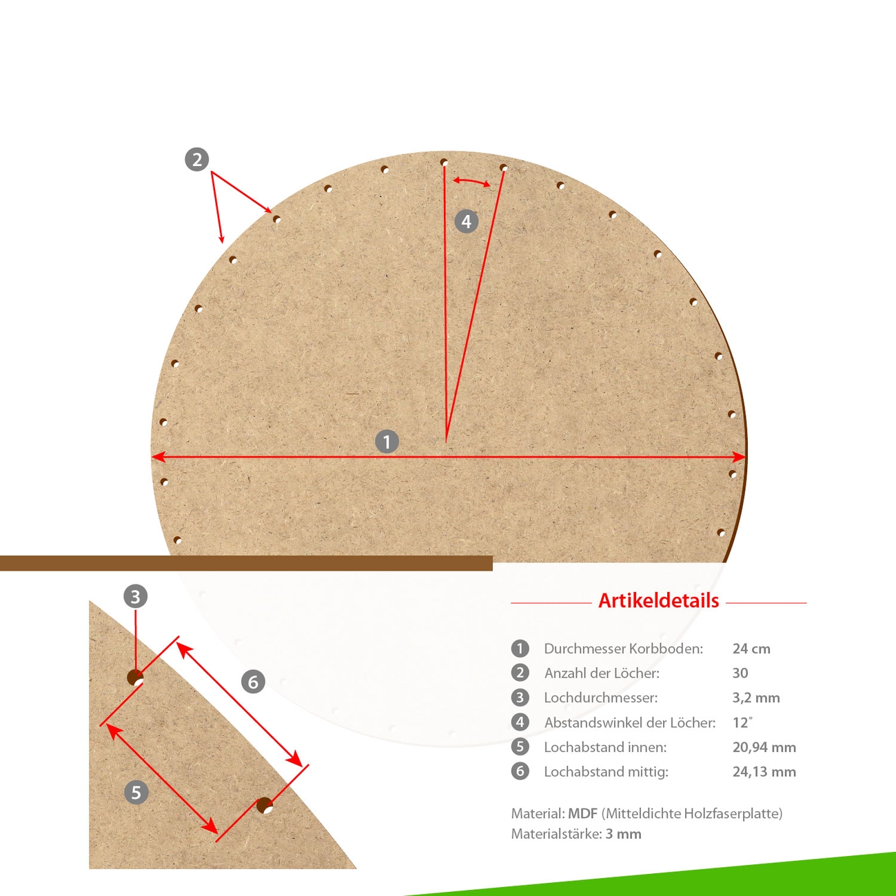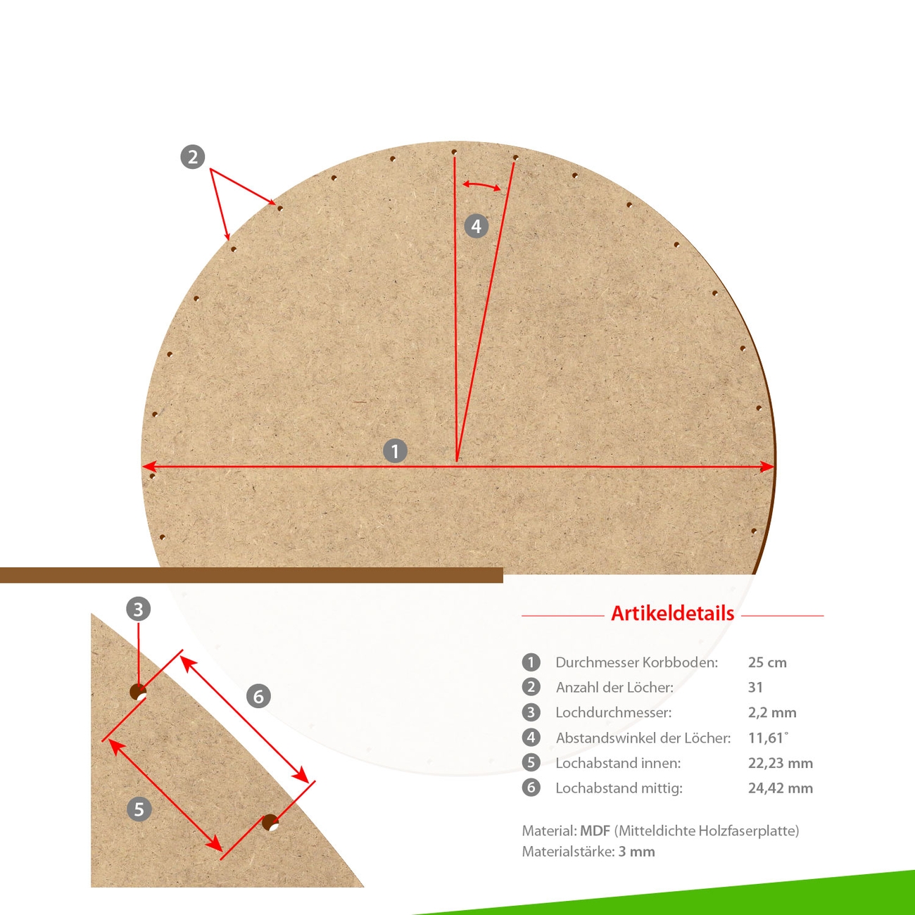 Die Löcher sind mit Laser-Cut-Technik geschnitten - sauber und genau für ein perfektes Flechtergebnis. Ideal für Peddigrohr oder Weidenruten. Egal ob du Körbe, Schalen oder Deko-Objekte flechtest - mit diesen Böden gelingt dir jedes Projekt.