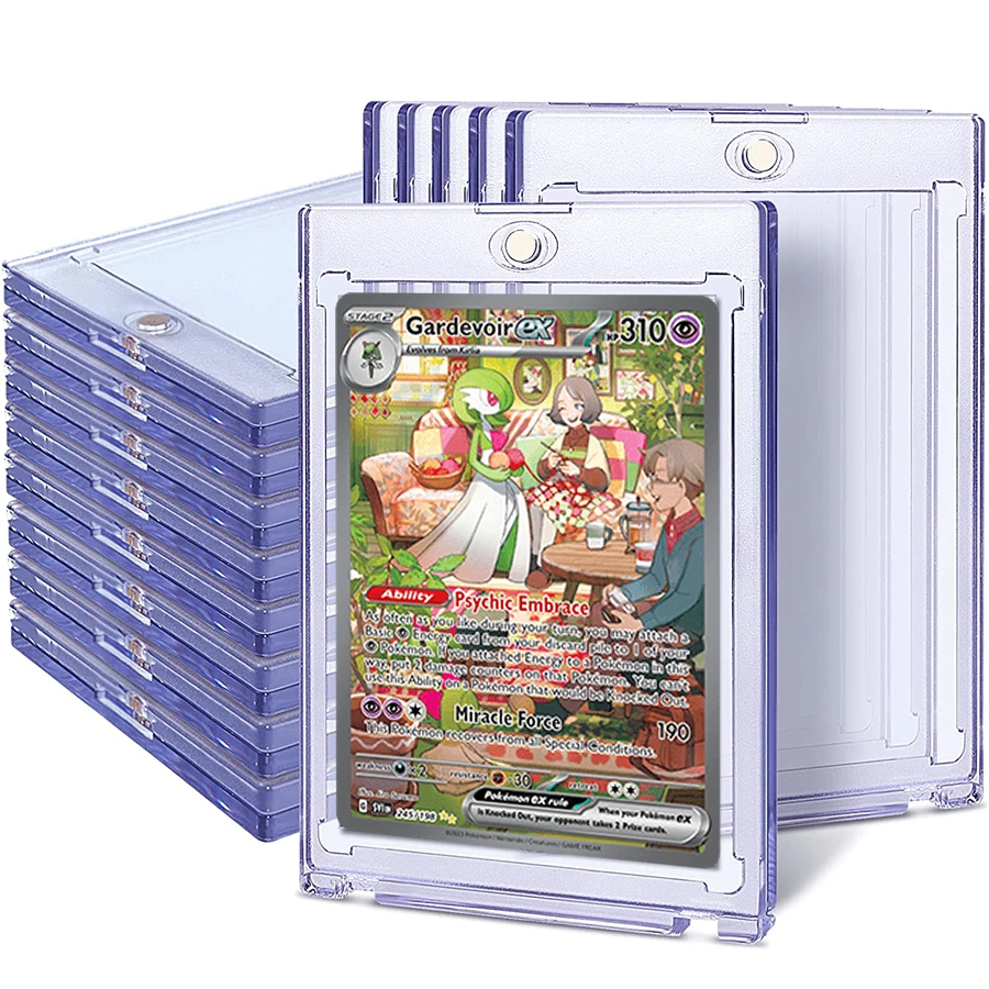 Hey Sammler! Diese Magnetic Card Holder sind ein echter Game-Changer für deine wertvollen Karten. 25 Stück im Set - jeweils 11x7,3cm groß mit Magnetverschluss oben. Aus hochwertigem PS-Material das UV-Schutz bietet und deine Karten vor Verblassen, Stürzen, Kratzern und Staub schützt. Die diamantenen Ecken verhindern das Verbiegen der Kartenecken. Super einfach zu öffnen und zu schließen - kein Werkzeug nötig! Perfekt für Pokemon, Yugioh, Baseball Karten oder auch Fotos und Autogramme. Damit kannst du deine Sammlung nicht nur sicher aufbewahren, sondern auch richtig gut präsentieren. Die transparente Hülle zeigt deine Karten von beiden Seiten. Ein mega Geschenk für andere Sammler-Freunde! Deine wertvollen Karten bleiben in bestem Zustand - ob für die Vitrine oder zum Tauschen. Einfach mal ausprobieren und deine Sammlung professionell schützen!