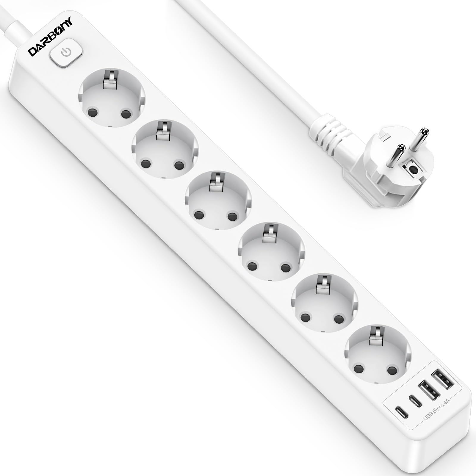 Endlich Ordnung am Schreibtisch! Diese praktische Steckdosenleiste hat 6 Schukosteckdosen und 4 USB-Anschlüsse - genug Platz für all deine Geräte. Mit 2500W Maximalleistung und Überspannungsschutz sind deine teuren Elektronikgeräte sicher geschützt. Das 2m lange Kabel gibt dir genug Spielraum für die optimale Platzierung. Der Hauptschalter macht das Ein- und Ausschalten aller Geräte mit einem Klick super einfach. Das 45-Grad-Design verhindert, dass sich große Stecker gegenseitig behindern. Perfekt für Home-Office, Wohnzimmer oder Schlafzimmer. Aus hochwertigem, flammhemmendem ABS-Material - sicher und langlebig. Die USB-Anschlüsse laden Smartphones, Tablets und andere Geräte schnell auf, ohne extra Ladegeräte. Spart Platz und sieht dabei noch stylisch aus in modernem Weiß. Einfach einstecken und sofort loslegen - deine Lösung gegen Steckdosen-Chaos!
