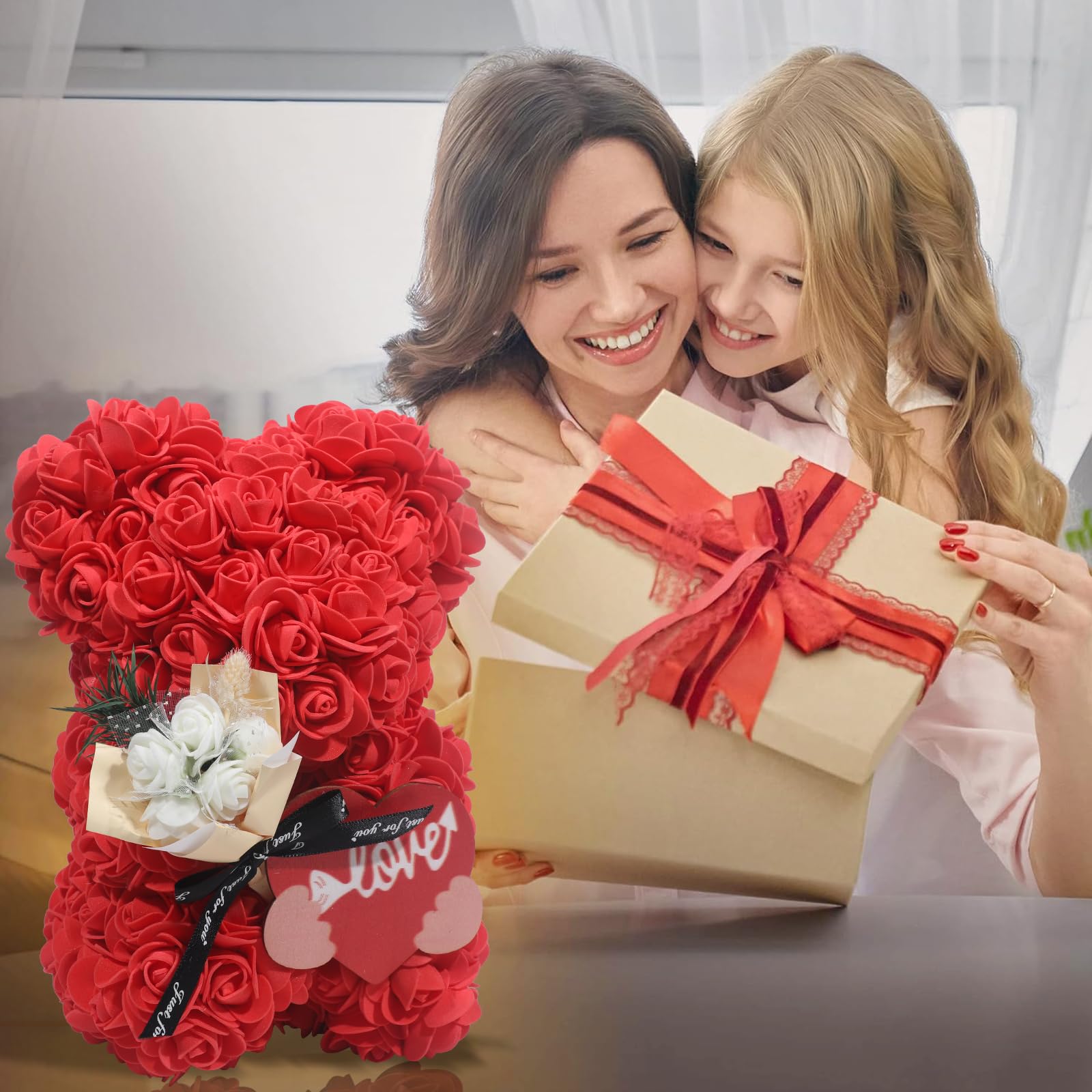 Oh, wie süß! Dieser Rosenbär ist einfach zauberhaft - ein Teddybär, der komplett aus künstlichen Rosen gehandarbeitet wurde. Mit 25cm Größe ist er genau richtig fürs Regal, den Schreibtisch oder als kuscheligen Begleiter. Das pinke Design strahlt pure Romantik aus und kommt in einer klaren Geschenkbox daher - perfekt verpackt zum Verschenken! Ob zum Valentinstag, Geburtstag oder einfach mal so als Überraschung für deine Liebste, deine Tochter oder die beste Freundin. Dieser Bär ist ein echter Hingucker und bleibt lange schön, da er aus künstlichen Blumen besteht. Ein Geschenk, das garantiert ein Lächeln ins Gesicht zaubert und das man nicht so schnell weglegt!
