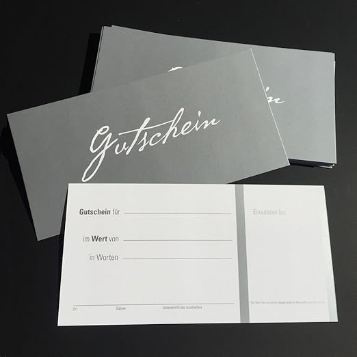 Suchst du professionelle Gutscheine für dein Business? Dieses 25er Set Blanko-Gutscheine ist perfekt für Nagelstudios, Friseure, Kosmetikstudios oder Massage-Praxen! Im DIN Lang Format (21x9,9cm) passen sie in Standard-Kuverts und sind super flexibel. Gedruckt auf hochwertigem 260g/m² Chromokarton mit Glanzveredelung - das merken deine Kunden sofort! Hergestellt in einer deutschen Familienmanufaktur, CO₂-neutral und plastikfrei verpackt. Viel Platz für Betrag, Logo, QR-Code oder persönliche Widmung. Einfach ausfüllen und deinen Kunden eine Freude machen - oder neue Kunden gewinnen! Qualität, die überzeugt!