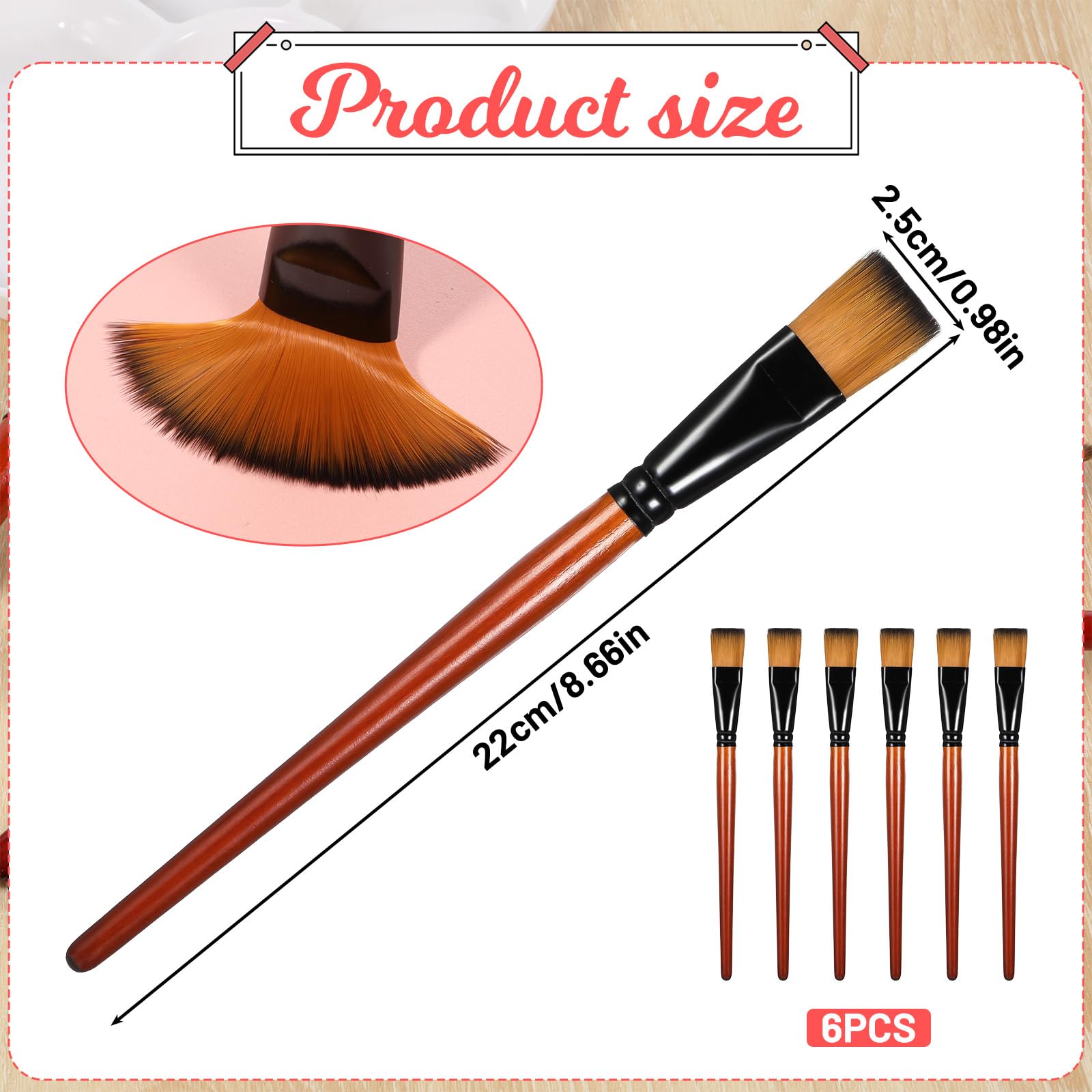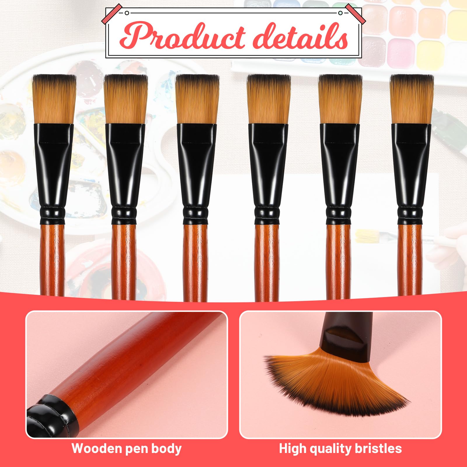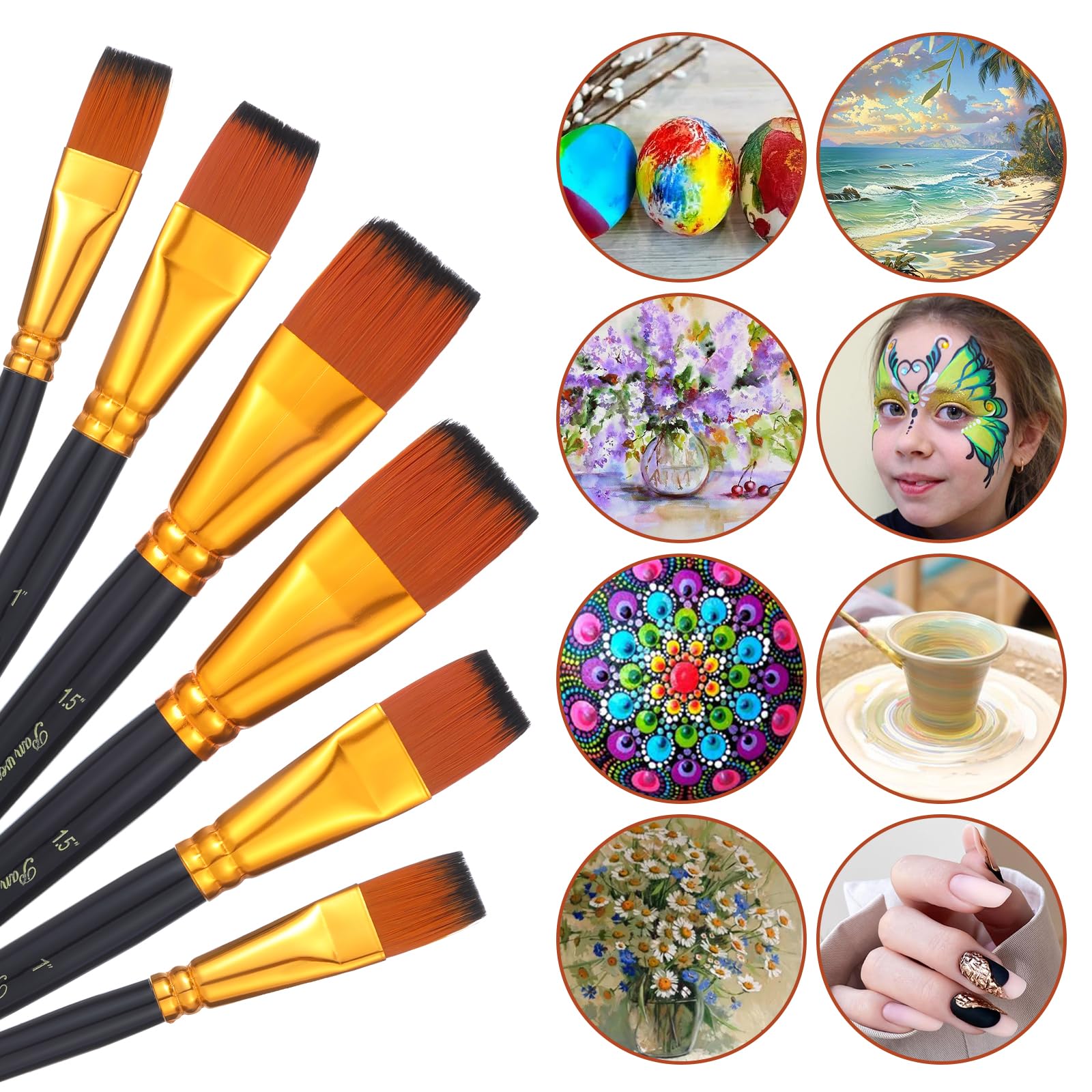 Hey du kreative Seele! Dieses 6er Set mit flachen Acryl Pinseln ist perfekt für deine Malprojekte. Mit 25mm Breite deckst du super schnell große Flächen ab oder setzt feine Details. Die Nylonborsten sind super weich und halten ewig - die doppelt gekräuselten Aluminiumhülsen sorgen dafür, dass keine Haare ausfallen. Die Holzgriffe liegen super in der Hand, selbst bei langen Mal-Sessions. Reinigen? Ganz easy mit warmem Seifenwasser! Egal ob du mit Acryl, Öl oder Aquarell arbeitest - diese Pinsel machen einfach alles mit. Perfekt für Leinwand, Gesichter oder Körperbemalung. Für Anfänger und Profis gleichermaßen geeignet! Hol dir dieses vielseitige Set und lass deiner Kreativität freien Lauf.