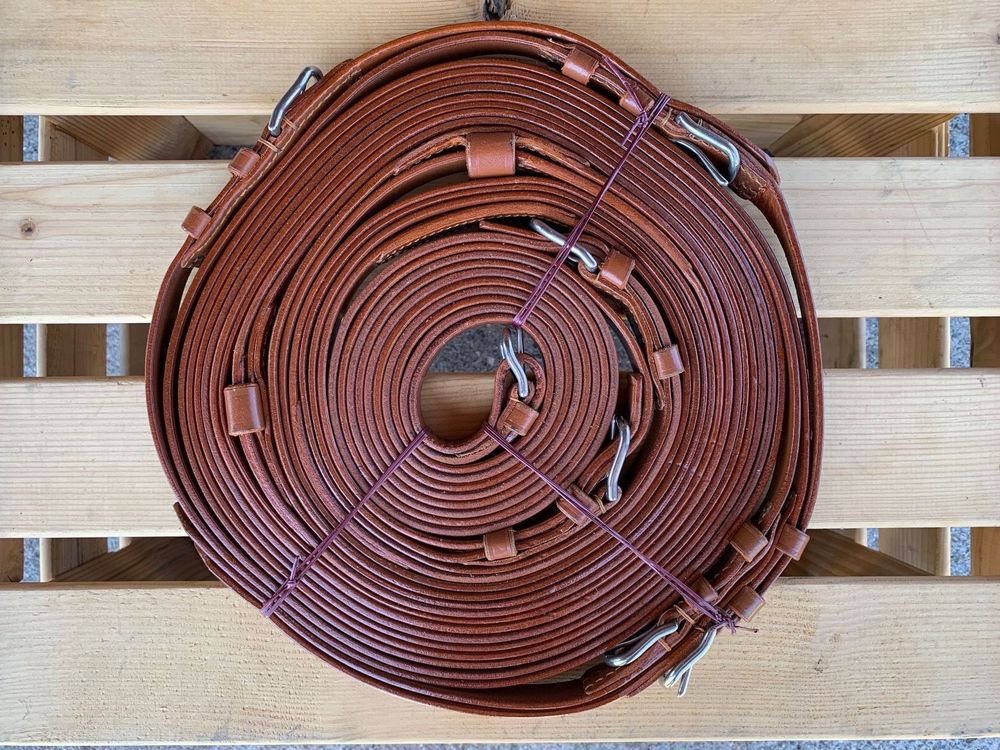 Für anspruchsvolle Fahrer und ihre Pferde! Diese AMKA Zweispännerleine aus robustem Leder in edlem Hellbraun gibt dir die perfekte Kontrolle über dein Doppelgespann. Mit 25mm Breite liegt sie super in der Hand und ermöglicht präzise Hilfengebung. Die silberfarbenen Metallschnallen sind nicht nur stylisch, sondern auch rostfrei und extrem stabil. Perfekt verarbeitet und langlebig - genau das, was du für Training, Ausfahrten oder Turniere brauchst. Ob im Gelände oder auf der Bahn - mit dieser Leine hast du immer die richtige Verbindung zu deinen Pferden. Ein echter Klassiker für alle, die Wert auf Qualität und traditionelle Handwerkskunst legen!