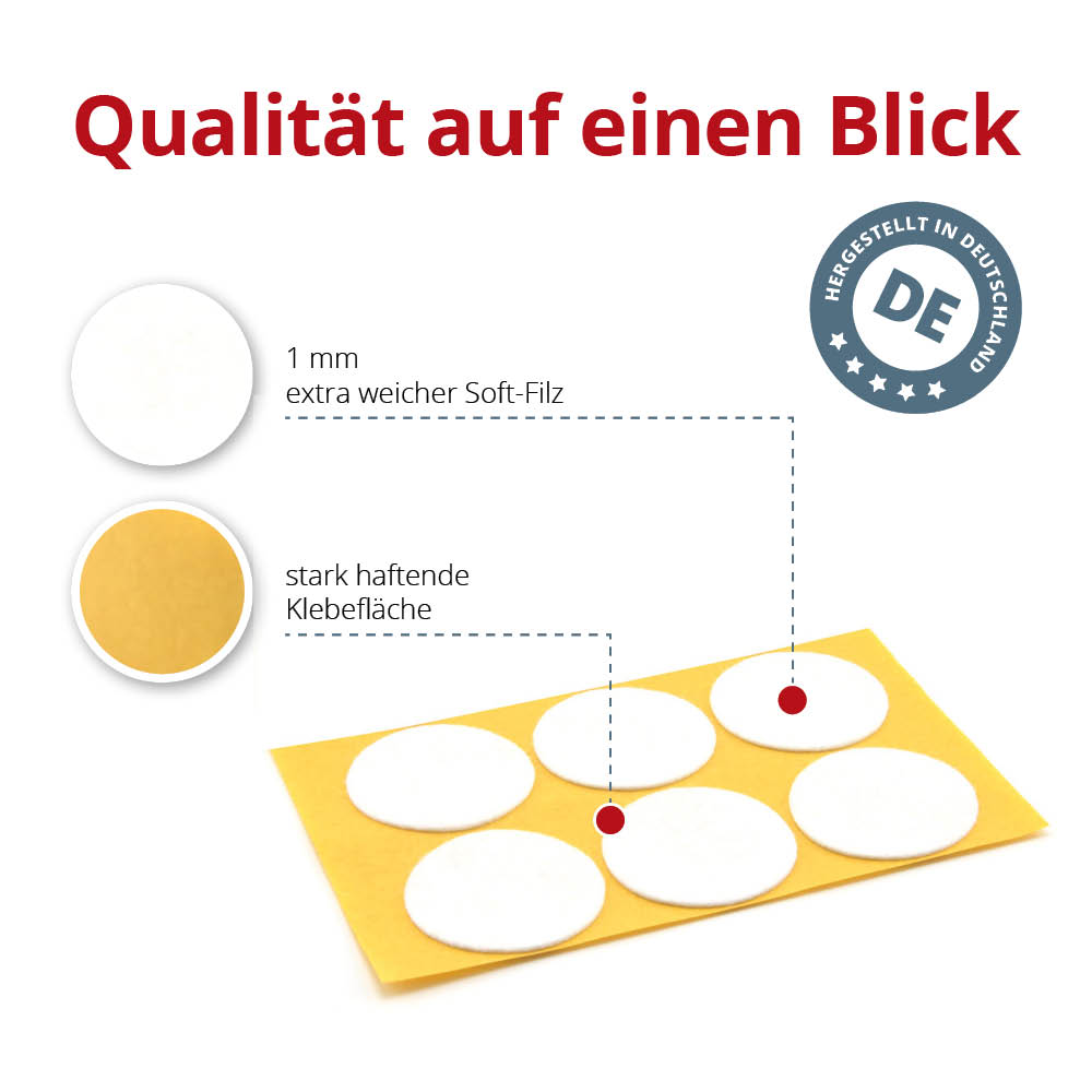 Schluss mit kratzenden Möbeln und lauten Stühlen! Diese 120 selbstklebenden Filzgleiter in 25mm Durchmesser sind die Lösung. Einfach Schutzfolie abziehen und auf Möbelfüße, Stuhlbeine oder Schränke kleben - schon rutscht alles leichter und macht keine Kratzer mehr auf dem Boden. Die 1mm dicken Filz-Pads sind aus hochwertigem Vlies, feuchtigkeitsbeständig und mega langlebig. Super auch für DIY-Projekte: Ob für Bastelarbeiten, Dekorationen oder um Gegenstände zu schützen - die Möglichkeiten sind endlos. Du kannst sie sogar übereinander kleben für mehr Dicke. Einfach zu entfernen und hinterlassen keine Rückstände. Perfekt für Holzböden, Fliesen, Laminat - einfach für alle Bodenarten. Mit 120 Stück im Pack hast du für alle Möbel im Haus genug und noch was für kreative Projekte übrig. Mach dein Zuhause kratzerfrei und leiser - mit diesen praktischen Filzgleitern!