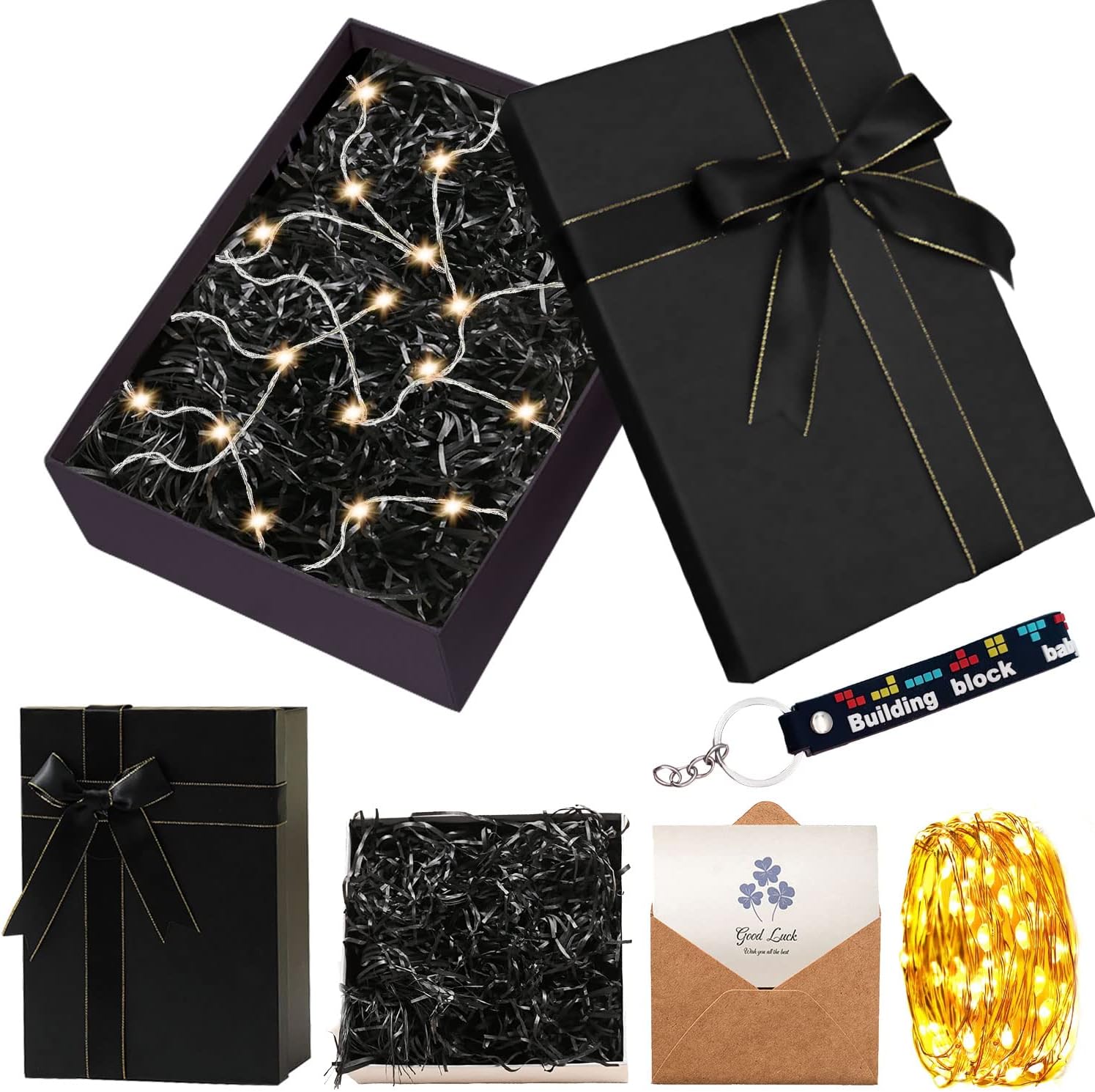 Perfekt verpackt für jeden Anlass! Diese große schwarze Geschenkbox mit den Maßen 25x25x25cm bietet reichlich Platz für mittelgroße Geschenke aller Art. Ob für Geburtstage, Hochzeiten, Jubiläen oder Weihnachten - hier passt garantiert das besondere Präsent rein. Im Lieferumfang ist alles enthalten, was du brauchst: Die Box selbst, ein elegantes Band und dekoratives Seidenpapier für die perfekte Präsentation. Aus stabilem Karton gefertigt, ist sie robust genug zum Versenden und kann immer wieder verwendet werden. Einfach zusammengeklappt geliefert, in Sekunden aufgebaut und schon bist du startklar für die nächste Feier. Mach deine Geschenke zum unvergesslichen Erlebnis!
