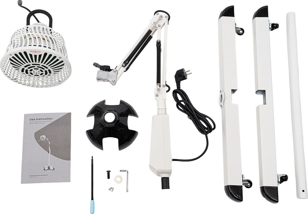 Mensch, diese Infrarot-Wärmelampe ist ja richtig professionell! Mit zwei Köpfen kannst du gleich zwei Körperstellen auf einmal behandeln - das spart Zeit und ist super effizient. Perfekt für zu Hause, aber auch für den Schönheitssalon geeignet.\n\nWas die Lampe so besonders macht: Sie hat eine verstellbare Temperatur von 0-115°C und der flexible Schlauch lässt sich in alle Richtungen biegen. So erreichst du genau die Stellen die wehtun. Die 360° Wärmeableitung sorgt dafür dass nichts überhitzt.\n\nTechnische Daten:\n• 275W Leistung\n• 220V Spannung\n• Bis 115°C einstellbar\n• Höhe: 160 cm\n• Doppelkopf-Design\n\nDie Sicherheit wird groß geschrieben: Wasserdicht, explosionsgeschützt und mit doppelter hitzebeständiger Abdeckung. Der Ständer ist drehbar und du kannst ihn mit Wasser oder Sand beschweren damit er nicht umkippt.\n\nEinfach die Fernbedienung nehmen, Position einstellen und entspannen! Die tiefenwirksame Infrarot-Wärme hilft bei Verspannungen, Gelenkschmerzen und fördert die Durchblutung. Einfach hinlegen, Augen schließen und die wohltuende Wärme genießen - besser als jede Massage!
