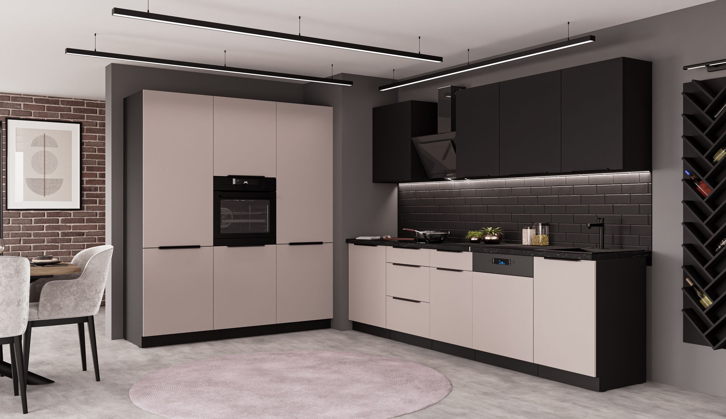 Traumküche gesucht? Die Siena Küchenzeile in 280cm Länge bringt Style und Funktionalität in dein Zuhause! In moderner Kaschmir Beige und Schwarz Matt Optik sieht sie einfach klasse aus. Die Schränke bieten jede Menge Stauraum für all deine Küchenutensilien. Besonders praktisch: Du kannst die Küche später beliebig mit Ergänzungsschränken erweitern. Achtung: Elektrogeräte und Spülbecken sind nicht im Lieferumfang enthalten - du hast also freie Wahl bei der Ausstattung. Perfekt für alle, die eine individuelle Küche wollen ohne Kompromisse beim Design. Ob in der Mietwohnung oder im Eigenheim - diese Küchenzeile macht überall eine gute Figur. Ein echter Hingucker, der nicht nur gut aussieht, sondern auch super praktisch ist. Deine Freunde werden staunen, wenn sie deine neue Küche sehen!