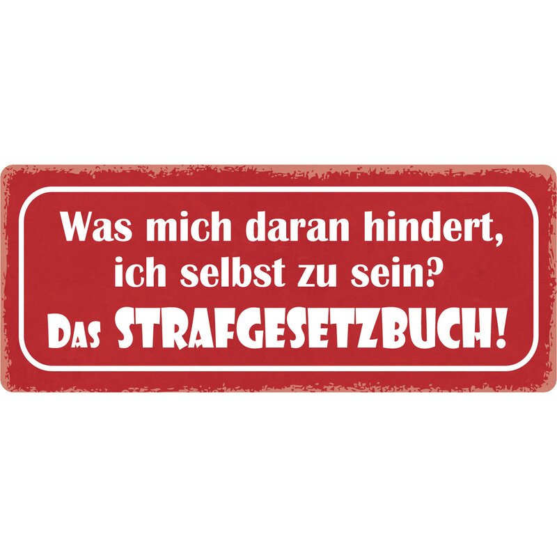 Dieses Blechschild bringt garantiert jeden zum Lachen! 😂 Mit dem Spruch 'Was mich hindert ich selbst zu sein das Strafgesetzbuch' ist es der absolute Hingucker in jeder Wohnung. Maße: 28x12 cm - also schön groß und gut lesbar. Perfekt für: • Wohnzimmer & Flur • Büro & Arbeitszimmer • Partykeller & Bar • Küche & Bad Mit praktischer Aufhängung: Kordel und Saugnapf - kein Bohren nötig! Einfach an Türen, Wänden, Schränken oder Glasflächen befestigen. Das Schild ist aus stabilem Metall mit kräftigem Druck - keine Sorge, das verblasst nicht so schnell! Super als Geschenk für: • Geburtstage & Feiern • Kollegen & Chefs • Freunde mit Humor • Menschen, die das Leben nicht so ernst nehmen Ob als kleine Aufmerksamkeit oder als Statement in den eigenen vier Wänden - dieses Schild sorgt immer für Gesprächsstoff und gute Laune! 🌟 Tipp: Kombiniere es mit anderen lustigen Schildern für eine ganze Galerie des Humors!