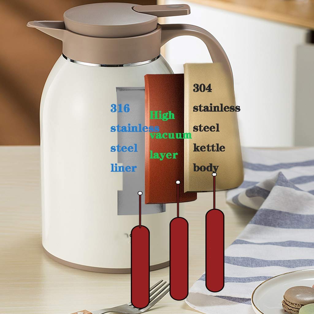 Diese 2L Edelstahl-Isolierkanne in Gold hält deine Getränke stundenlang perfekt temperiert! Mit doppelwandiger Vakuumisolierung bleibt Kaffee 12 Stunden heiß und kalte Getränke 24 Stunden kühl. Der auslaufsichere Deckel mit Silikondichtung macht sie perfekt für unterwegs - ob ins Büro, zum Picknick oder auf Reisen. Der ergonomische Holzgriff liegt super in der Hand und schützt vor Verbrennungen. Die breite Öffnung macht Reinigen und Befüllen zum Kinderspiel. Perfekt für Kaffee, Tee, Wasser oder was auch immer du magst. Für Zuhause, die Arbeit oder unterwegs - mit dieser Kanne hast du immer das perfekte Getränk zur Hand. Einfach befüllen, verschließen und genießen!
