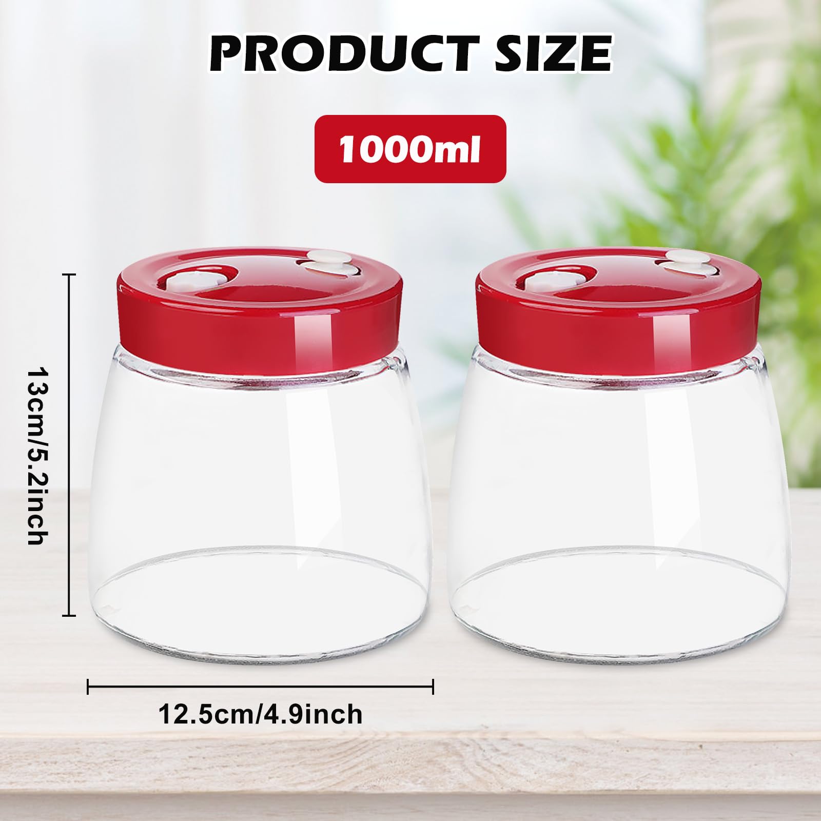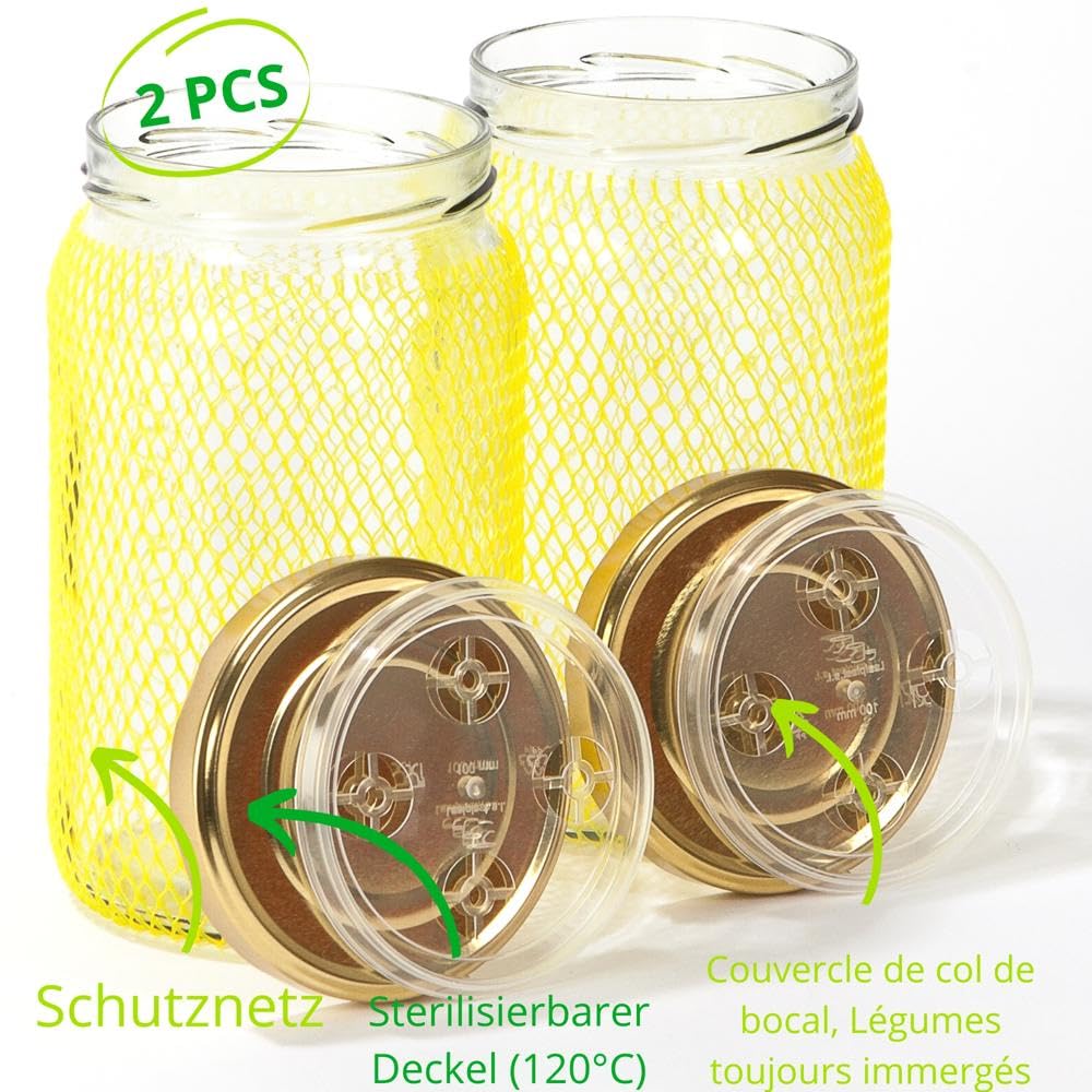 Entdecke die Welt des Fermentierens mit diesen praktischen Gärgläsern! Das 2er-Set mit je 1 Liter Fassungsvermögen ist perfekt für alle, die gerne Kimchi, Sauerkraut, Kombucha oder andere fermentierte Leckereien selbst machen. Das Besondere: Die Gläser haben ein innovatives Einweg-Luftventil, das während des Gärprozesses automatisch Gase entweichen lässt, ohne dass Sauerstoff hereinkommt - kein manuelles Entlüften mehr nötig! Aus robustem, BPA-freiem Glas und mit lebensmittelechten PP-Deckeln sind sie absolut sicher für deine Lebensmittel. Die kompakten Maße (12,5 x 12,5 x 12,5 cm) machen sie platzsparend im Kühlschrank oder Vorratsschrank. Und die Reinigung ist ein Kinderspiel: Einfach ausspülen oder in die Spülmaschine stellen. Ob du ein Fermentier-Anfänger bist oder schon Erfahrung hast - mit diesen Gläsern gelingt dir alles! Perfekt für Sauerteig-Starter, fermentiertes Gemüse, Joghurt oder eben deinen eigenen Kombucha. Einfach befüllen, Deckel drauf und abwarten - der Gärprozess erledigt den Rest. Hol dir jetzt dieses praktische Set und starte dein nächstes Fermentier-Abenteuer!