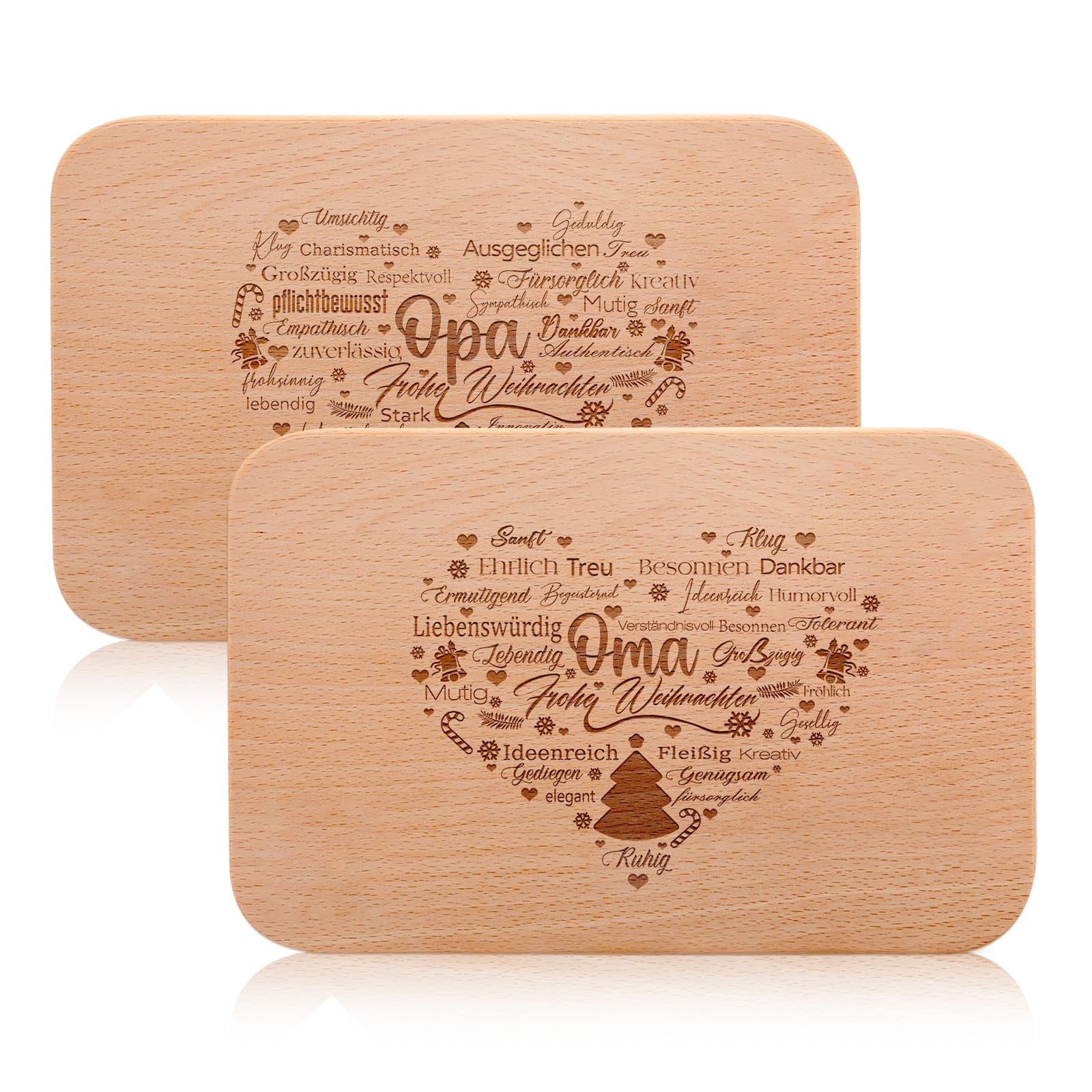 Dieses süße 2er Set Frühstücksbretter ist das perfekte Geschenk für Oma und Opa! Aus natürlichem Bucheholz gefertigt, jedes Brett ein Unikat mit eigener Maserung. Die Ecken sind zu sicheren Rundungen geschliffen, also keine scharfen Kanten. Das Besondere: Jedes Brett hat eine exquisite Lasergravur mit herzlichen Motiven - die bleibt ein Leben lang schön! Mit 23x15 cm Größe perfekt für Frühstück, Snacks oder als Servierbrettchen. Aber Achtung bei der Pflege: Vor dem ersten Gebrauch mit Speiseöl einreiben, nur mit Wasser abspülen und nicht in die Spülmaschine! Ob zu Weihnachten, Geburtstag, Muttertag oder Vatertag - dieses Geschenk kommt immer gut an. Jedes Mal, wenn Oma und Opa die Bretter benutzen, denken sie an dich. Einfach, persönlich und praktisch - was will man mehr? Einfach bestellen und sich über strahlende Großeltern freuen!