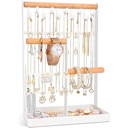 Endlich Ordnung im Schmuckkästchen! Diese beiden hübschen Schmuckständer aus Naturholz sind nicht nur praktisch, sondern sehen auch noch super dekorativ aus. In zwei Größen erhältlich: 19x22,5cm und 24,5x28cm. Die T-Form ist perfekt zum Aufhängen von Halsketten, Armbändern und Ohrringen - alles griffbereit und übersichtlich. Aus robustem, umweltfreundlichem Holz gefertigt, das lange hält. Einfach zusammenzustecken - keine komplizierte Montage nötig. Platzsparend für Schminktisch, Bad oder Schrank. Die natürliche Holzfarbe passt zu jedem Einrichtungsstil und lässt deine Schmuckstücke optimal zur Geltung kommen. Nie wieder verknotete Ketten oder verlorene Ohrringe! Mit diesem Set hast du deinen Schmuck immer im Blick und sorgst gleichzeitig für eine schöne Deko auf deinem Schminktisch.