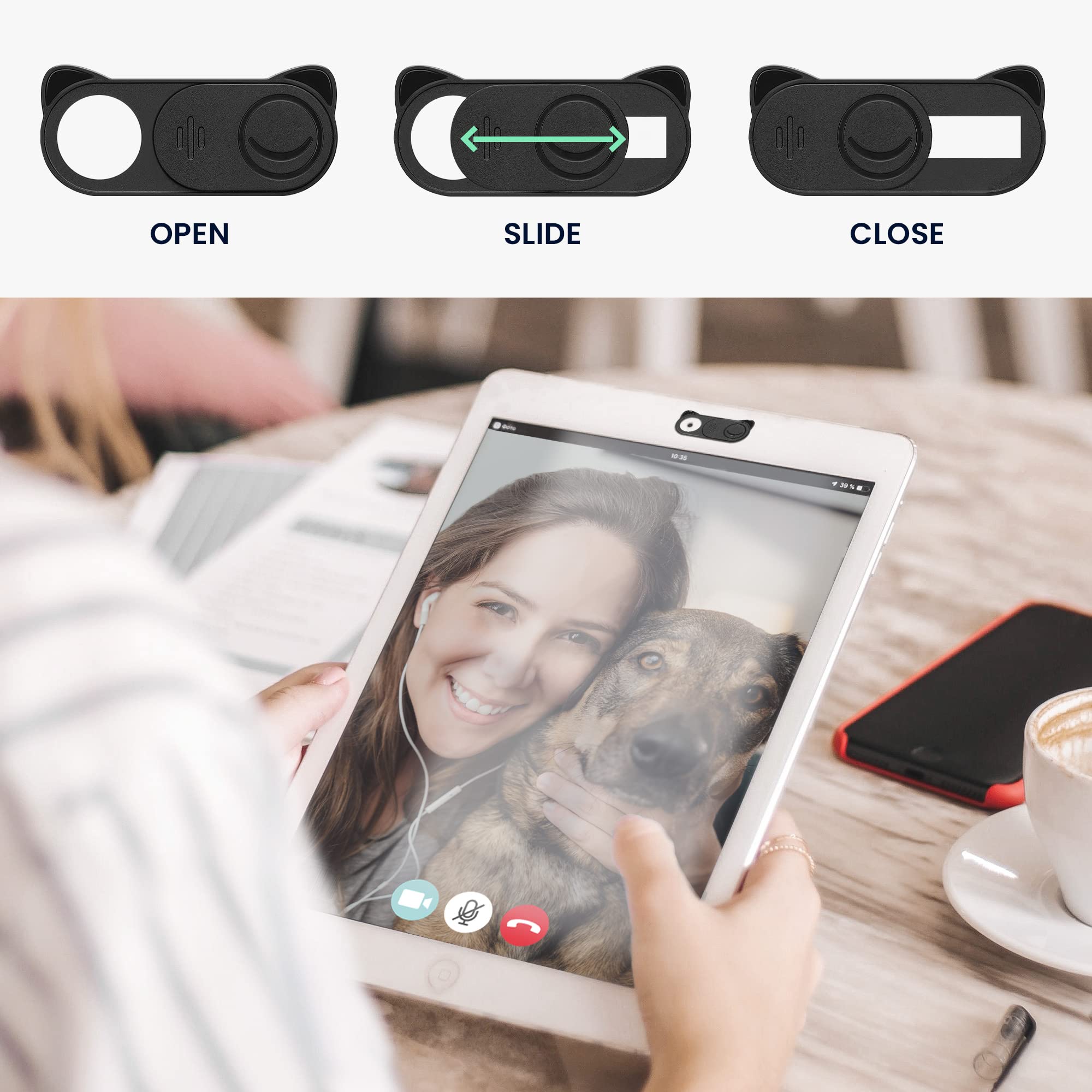 Sicherheitsbewusste, aufgepasst! Diese Webcam-Abdeckungen schützen dich vor unerwünschten Blicken - einfach und effektiv! Im 2er-Set für Laptop, Smartphone oder PC. \\n\\nNur 0,2cm dick - super flach und stört nicht beim Schließen des Laptops. Einfach aufkleben und mit dem Slider öffnen oder schließen - deine Privatsphäre in deiner Hand! \\n\\nAus robustem ABS-Material - hält ewig, verformt sich nicht. Schützt nicht nur vor Hackern, sondern auch vor Staub und Kratzern! \\n\\nRückstandslos entfernbar - keine klebrigen Reste auf deinem Gerät. Einfach abziehen, wenn du sie nicht mehr brauchst! \\n\\nIn schwarz erhältlich - unauffällig und stylisch. Deine Daten gehören geschützt - mach's einfach mit diesen Abdeckungen! \\n\\nAnzahl: 2 Stück • Material: ABS • Stärke: 0,2cm • Montage: Selbstklebend • Features: Slider, rückstandslos entfernbar