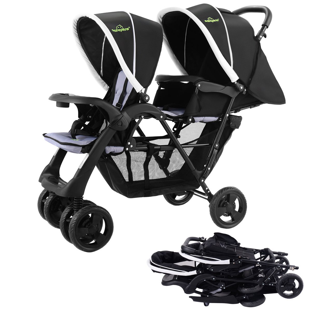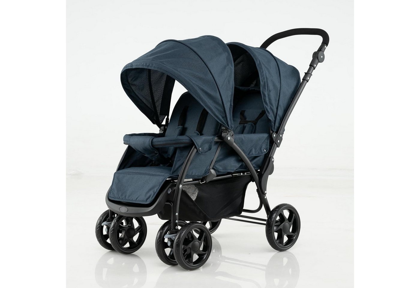 • COSTWAY 2in1 Geschwisterwagen - Klappbarer Zwillingskinderwagen Mit Verstellfunktion