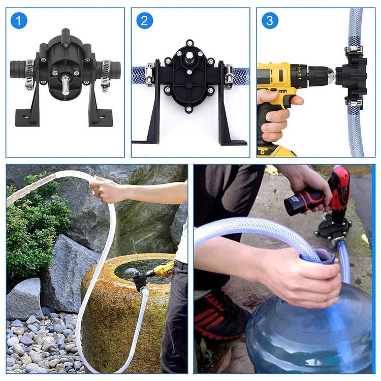 Hey Heimwerker! Diese Bohrmaschinenpumpe ist der praktische Helfer für alle Flüssigkeiten! Einfach an deine Bohrmaschine anschließen und schon pumpt sie Wasser, Öl, Kraftstoffe und mehr mit bis zu 30 Litern pro Minute. Mit 2 Metern Schlauch und 15mm Durchmesser erreicht sie auch schwer zugängliche Stellen. Die maximale Förderhöhe beträgt 3 Meter - perfekt für Regentonnen, Aquarien oder Boote. Aus korrosionsbeständigem Kunststoff gefertigt, ist sie langlebig und leicht zu reinigen. Im Lieferumfang: Pumpe, 2m Schlauch, 2 Anschlüsse und 5 Schlauchschellen. Einfach montieren und sofort einsatzbereit! Ob im Garten, in der Werkstatt oder auf dem Campingplatz - diese Pumpe ist immer zur Stelle. Einfach anschließen, Bohrmaschine starten und flüssigkeiten pumpen - so praktisch!