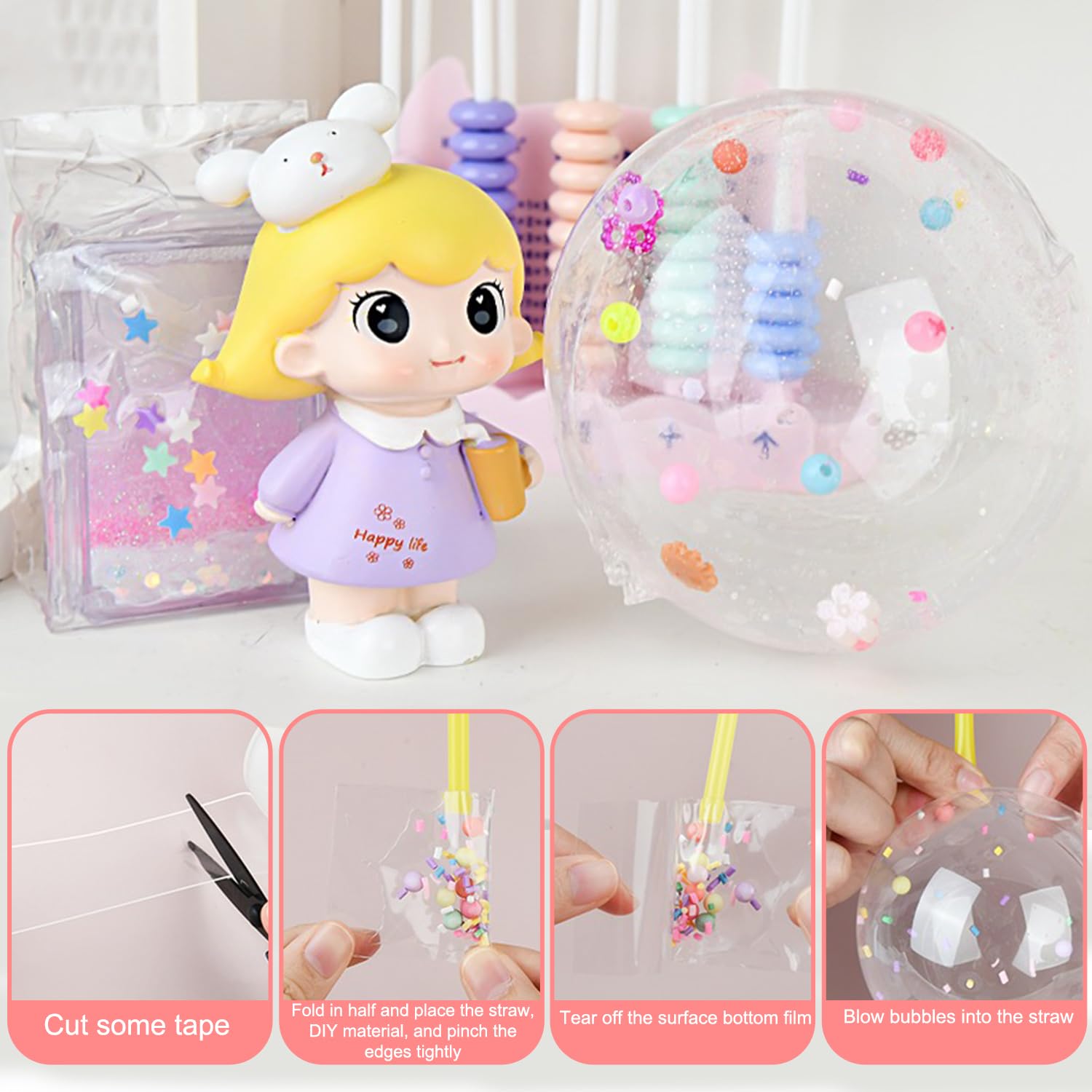 Wow, dieses Nano Tape Set von Puosike ist ja der absolute Hit für kreative Kinder! Mit 2x 3 Meter langem Nano Tape und jeder Menge Zubehör kannst du dir deine eigene Seifenblasen-Welt erschaffen.\n\nStell dir vor: Du schneidest das Nano Tape zu, faltest es und füllst es mit Glitzer, Perlen oder Wasser. Dann bläst du es mit der mitgelieferten Luftpumpe auf - und schon hast du deine eigenen, superhüpfenden Seifenblasen! Die Möglichkeiten sind endlos: Milchkarton-Seifenblasen, Süßigkeiten-Formen, Kristallknete - was immer dir einfällt!\n\nNicht nur für Kinder super: Auch Erwachsene lieben dieses Stressabbau-Spielzeug! Einfach mal kneten, drücken und die befriedigenden Knackgeräusche genießen. Perfekt zum Abschalten nach einem anstrengenden Tag.\n\nIm Set ist alles dabei: 2 weiße Nano Tapes à 3m, 12 Ultra Light Clay, Ketten, Aufkleber, Glitzer, Sterne, Zucker-Deko, bunte Perlen, Schere, Pinzette und die Handluftpumpe. Damit kannst du 30-40 verschiedene Projekte umsetzen!\n\nSuper als Geschenk für Geburtstage, Weihnachten oder einfach so. Die ganze Familie kann gemeinsam basteln und kreativ werden. Einfach ausprobieren und staunen, was für coole Kreationen damit möglich sind!